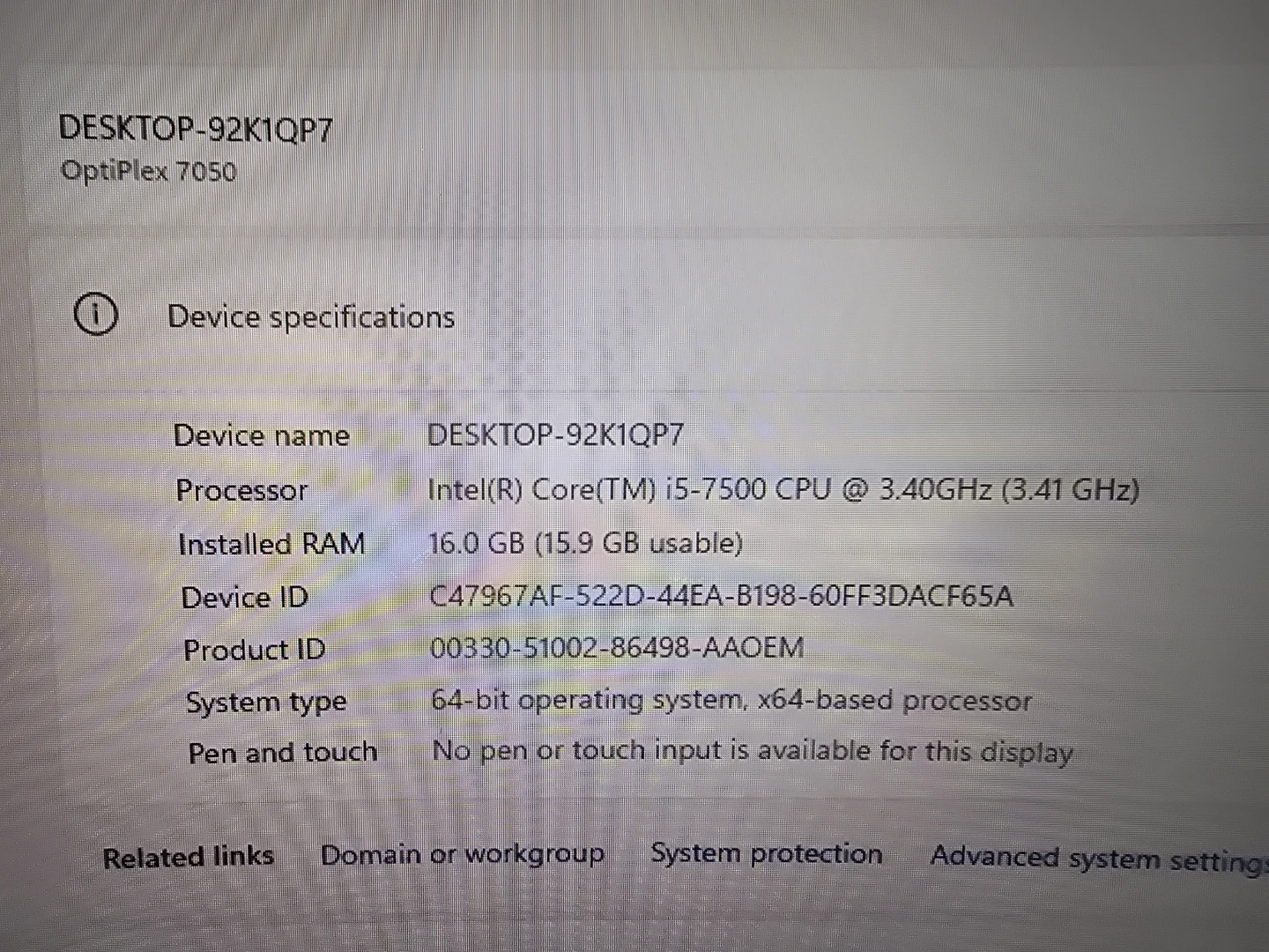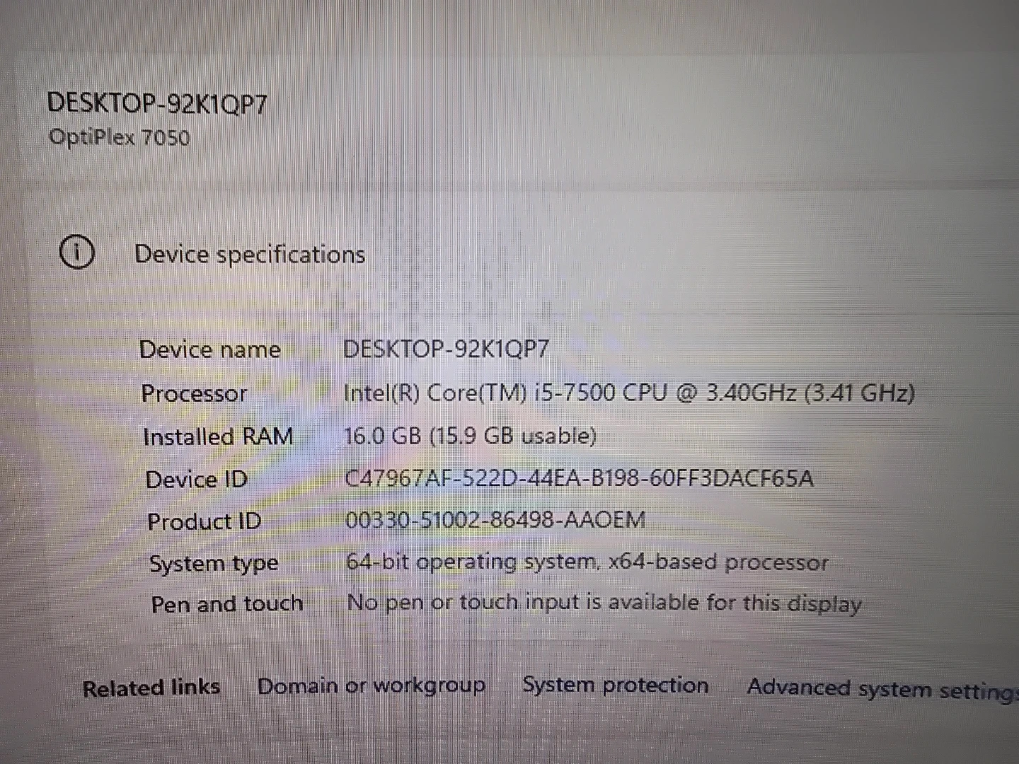 - Intel(R) Core(TM) i5-7500 CPU @ 3.40GHz (3.41 GHz)
