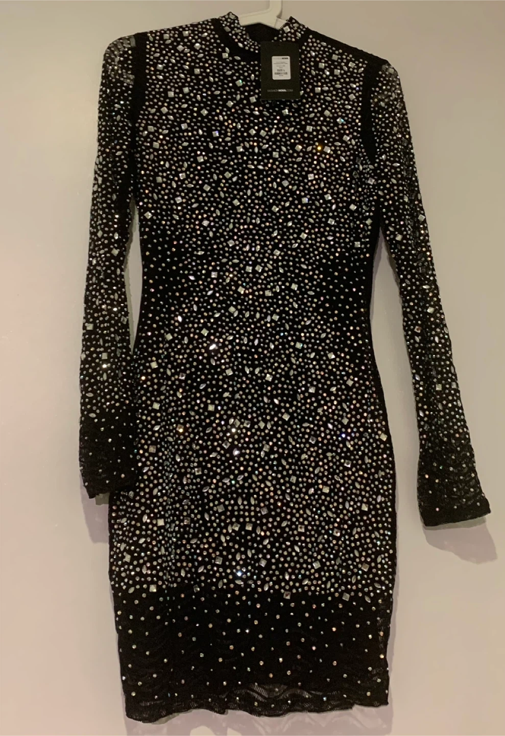 * Fashion Nova Rhinestone Dress - Black, Size L (fits a size M) (slide 1-4) $40