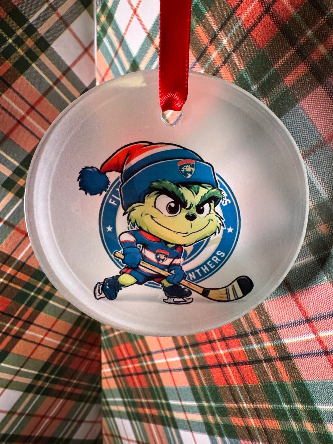 These are NHL themed Grinch Christmas ornaments. They would be perfect for any hockey fan!
