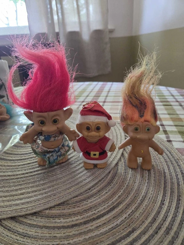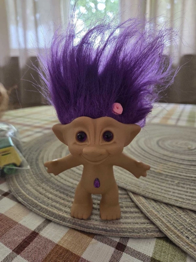 Spruce up your collection with these vibrant, pre-loved Forest Trolls, each boasting a unique burst of colourful hair. These little guys have been around the block but are still ready to bring some whimsy to your shelf! While these trolls are used, they're in good condition and ready for a new home. A quick brush of their iconic hair, and they're set to stand guard over your treasures or star in your next imaginative adventure. I'm pricing these in the middle to find them a good home. If the ad is still up, these groovy dudes are still available! 8 inches total height.