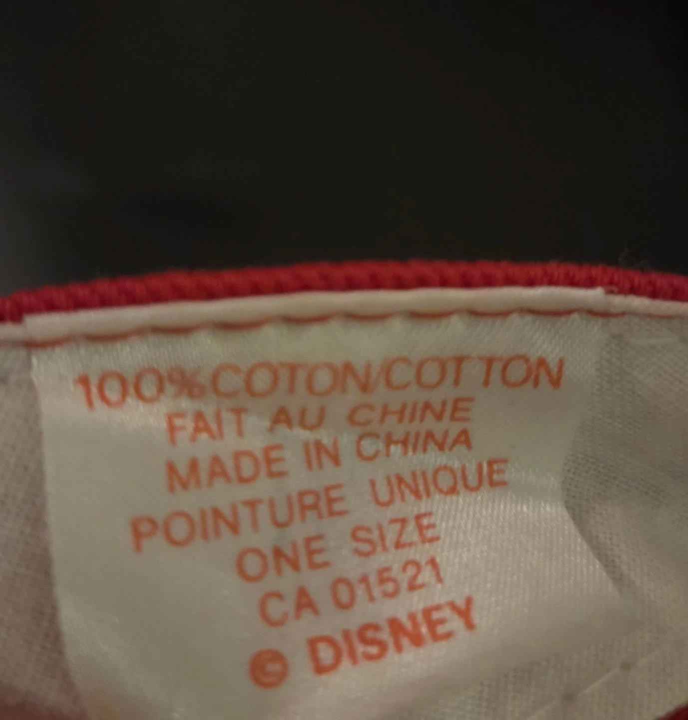 Authentic Red and black Disney cap. 100% Cotton.