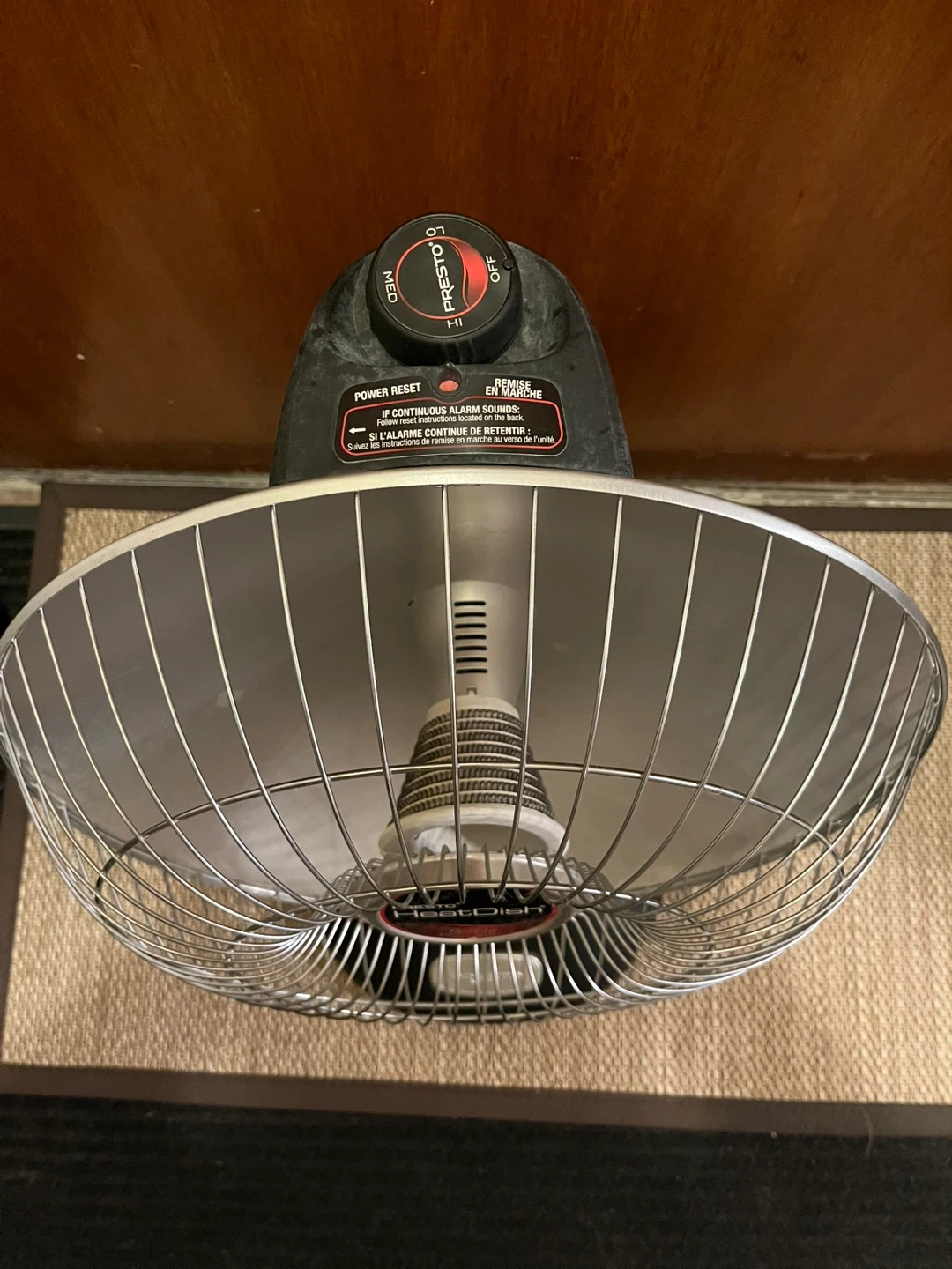 Selling a Presto HeatDish parabolic electric heater. It's great for providing focused warmth where you need it. It has an adjustable thermostat and a safety switch