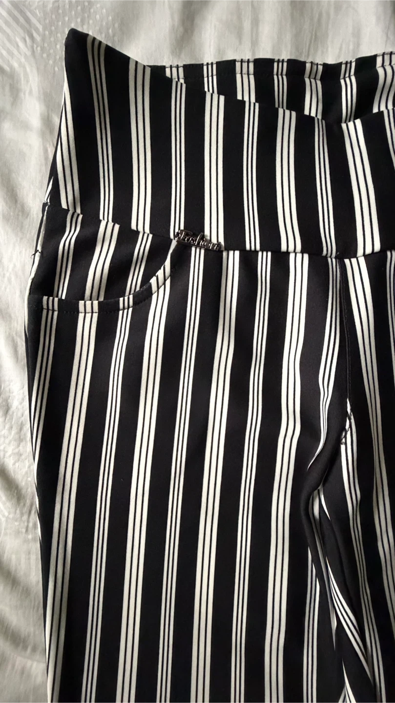 Tashaheart pant in a black and white striped pattern! They're in great condition. Fits waist size 28-30. Perfect for formal as well as casual wear.