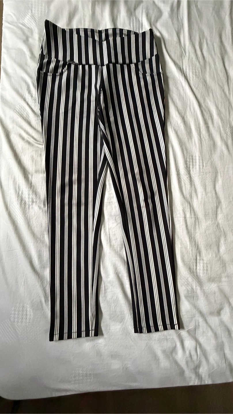 Tashaheart pant in a black and white striped pattern! They're in great condition. Fits waist size 28-30. Perfect for formal as well as casual wear.