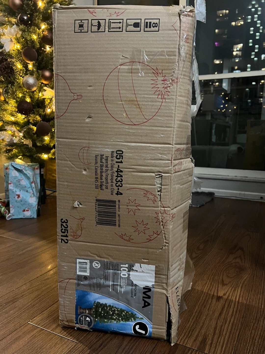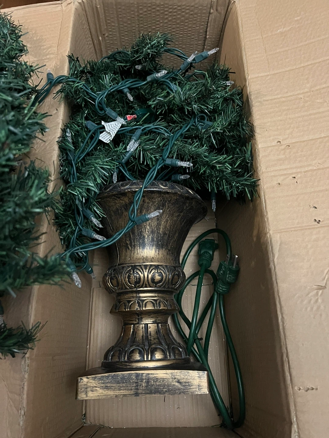 Selling a NOMA 4 foot tall indoor/outdoor potted porch Christmas tree. Comes with lights and a green extension cord.