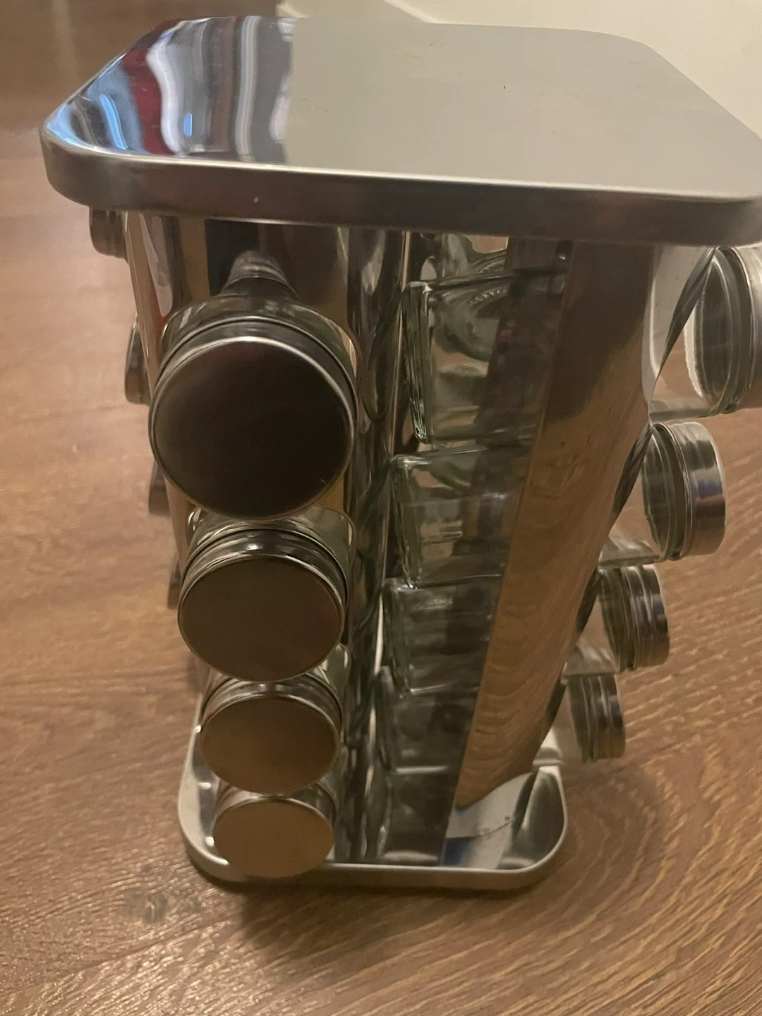 Selling a KSP Spin Spice Rack made of stainless steel. It's in great condition and ready to organize your spices! Originally bought for $35.99 plus tax