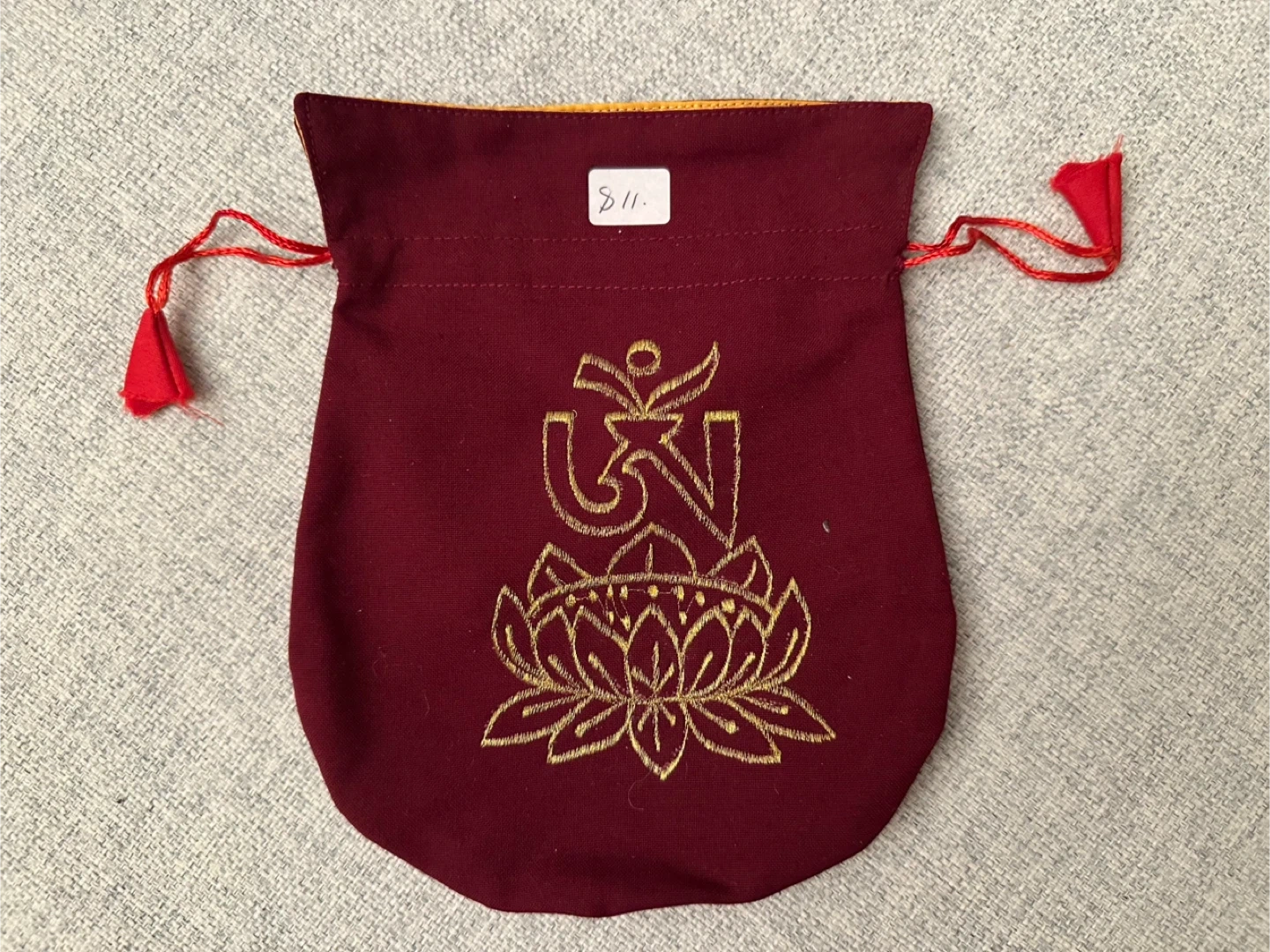 Burgundy ones embroidered with Om symbol and lotus: 15x18cm. $11