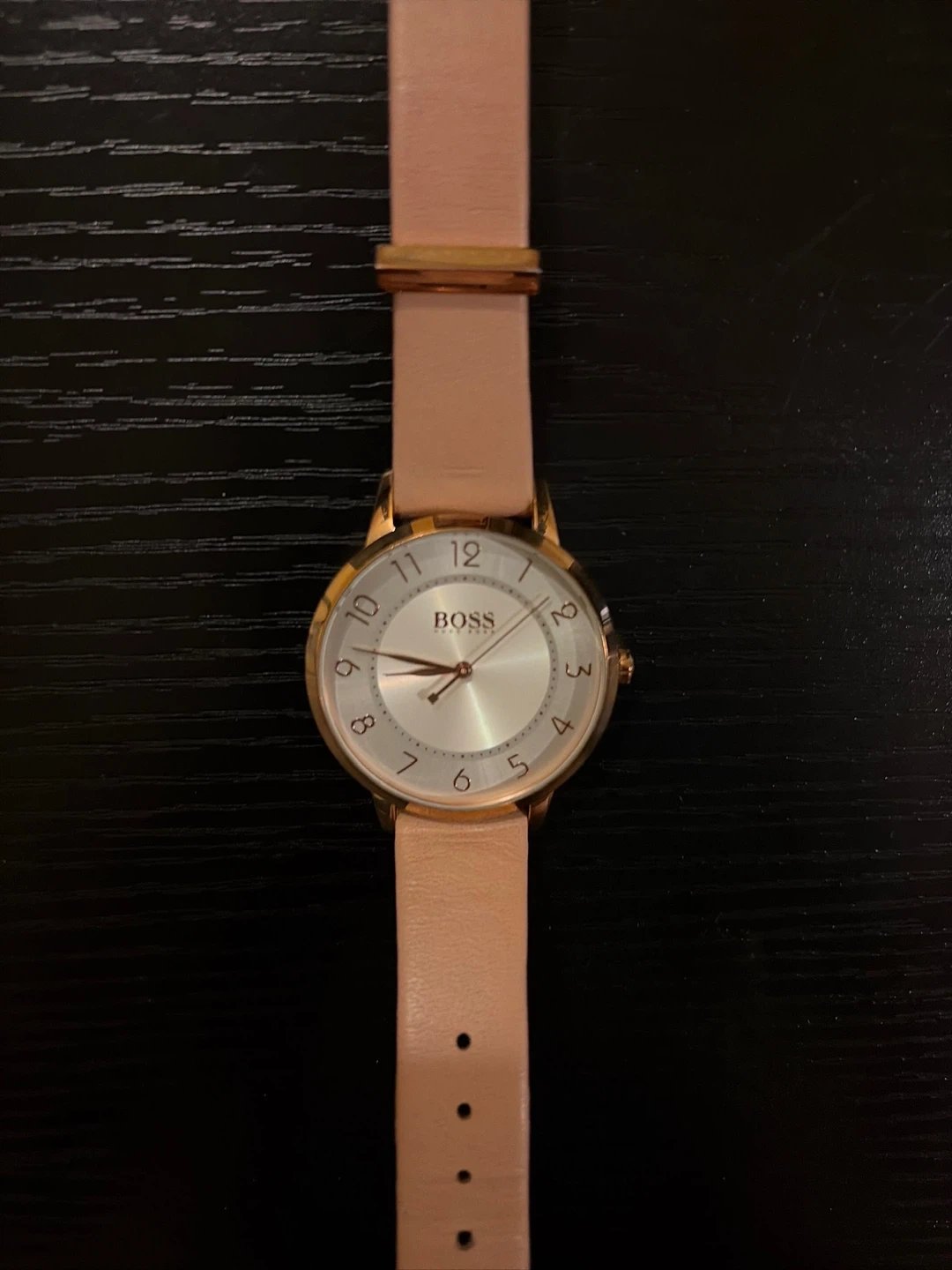 Selling a beautiful Hugo Boss ladies watch! It features a lovely pink leather strap and a classic design. Perfect for everyday wear or a special occasion