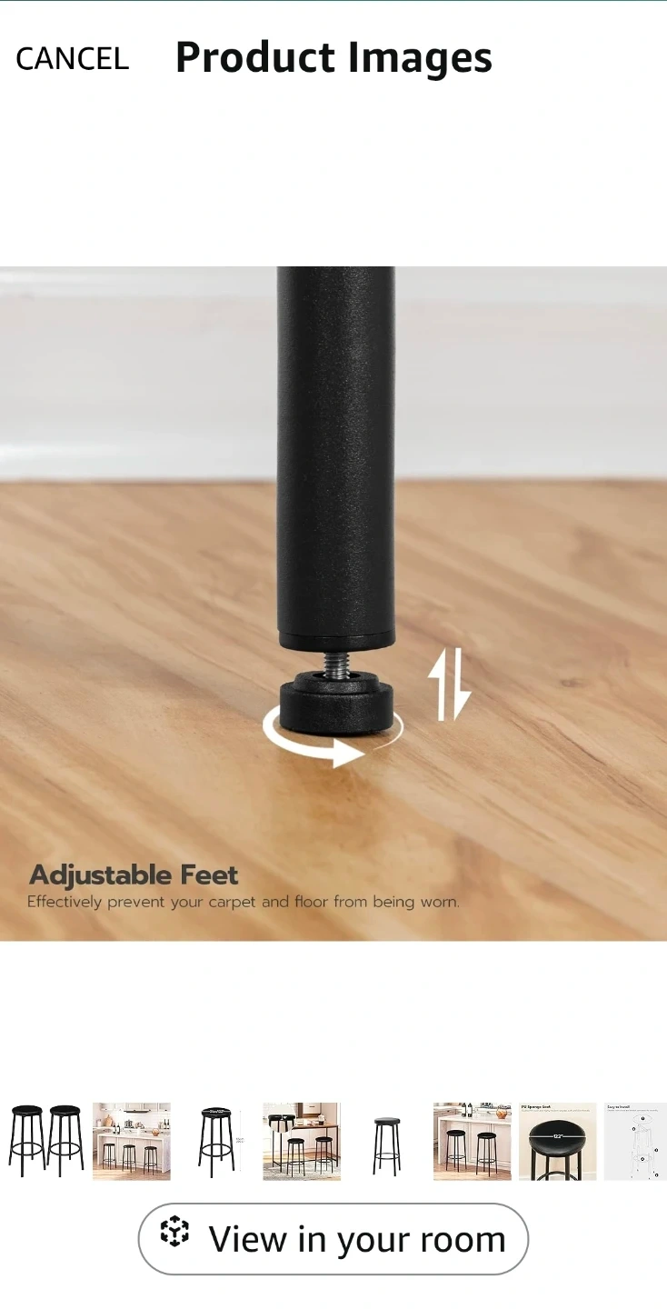 Selling a bar stools in black colors. Snug and Easy to Clean The 4.5 cm thick sponge cushion has excellent resilience and soft touch and the PU cover. It's perfect for a kitchen, dining room, or party! The stool has a comfortable footrest and is easy to assemble. Dimensions are approximately 25 inches tall with a 12 inch diameter seat.
