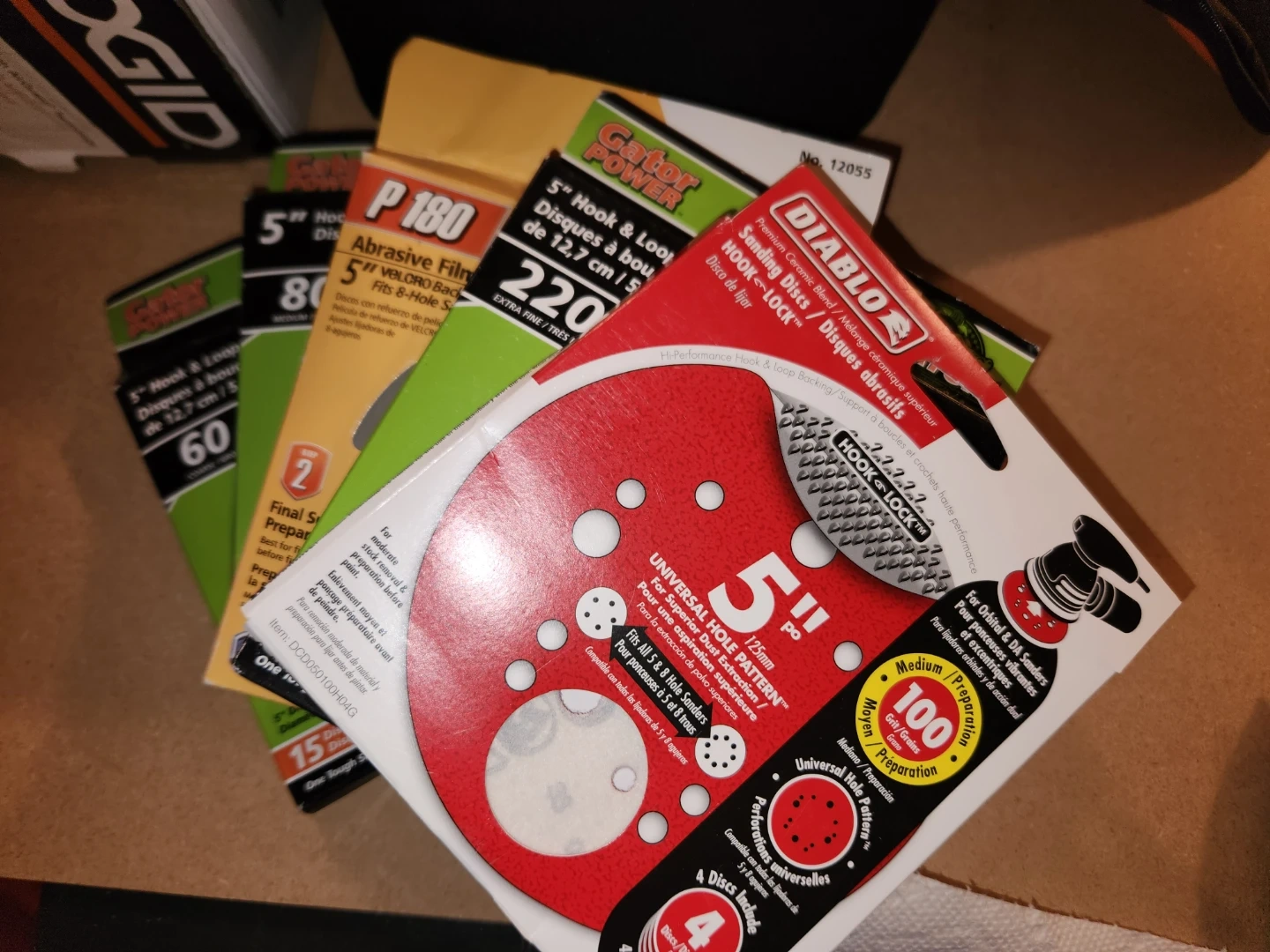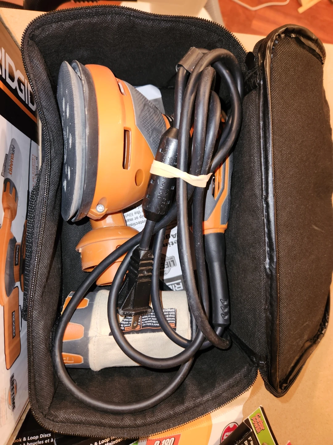 Selling a Ridgid 5" Random Orbit Sander with AirGuard Technology. It comes with a variety of sanding discs, including Diablo and Gator Power brands. The sander is in like new condition and comes with its original carrying case. Perfect for your sanding projects!