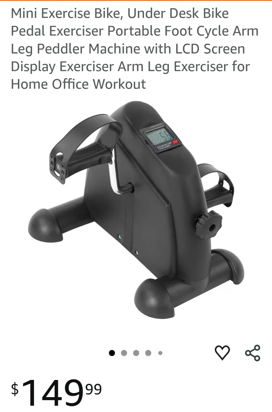 NEW Get your exercise in anywhere with this handy mini exercise bike! It's in New condition and easy to store. It can be used for both leg and arm exercises. It helps to tighten abdominal core and reduce lower body fat. Dimensions are: 12.6in (32cm) height, 15.98in (40.6cm) length, and 13.8in (35.1cm) width. Originally bought for $149.99