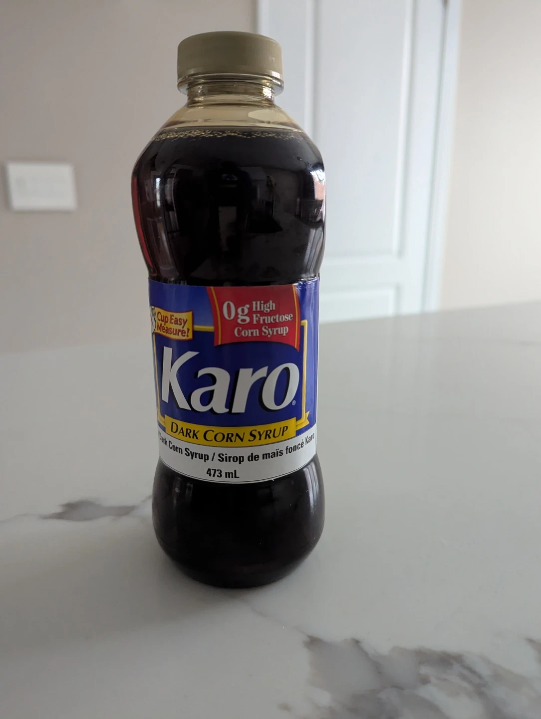 Selling a bottle of Karo Dark Corn Syrup, 473 mL size. It's perfect for baking and making delicious treats!