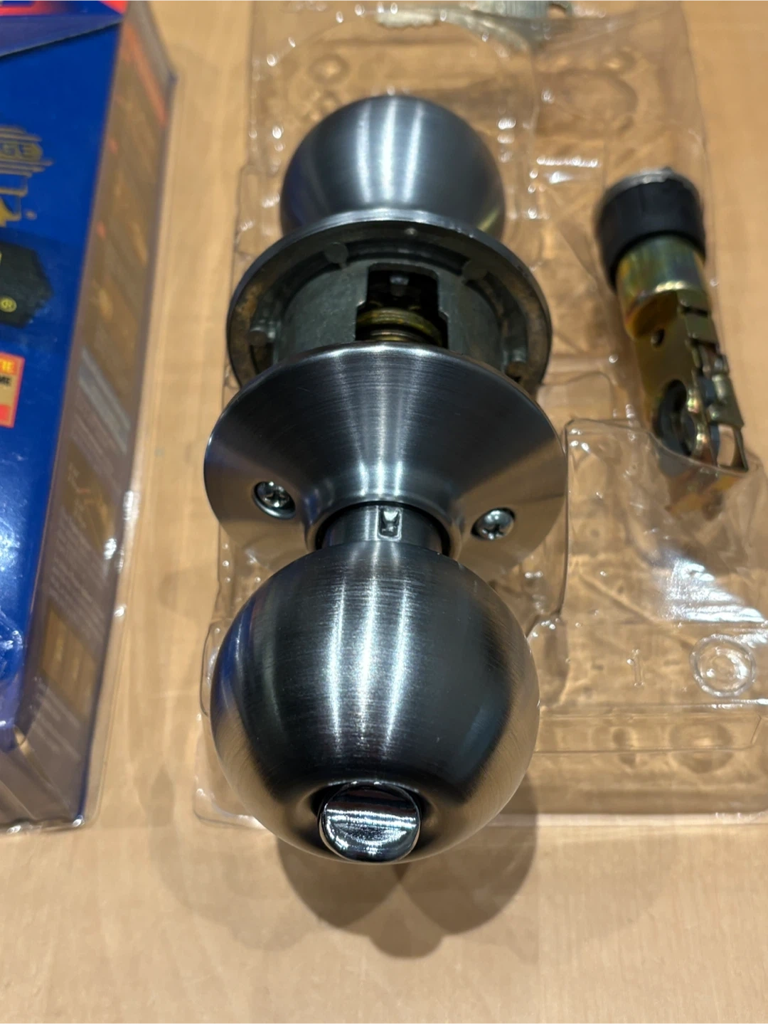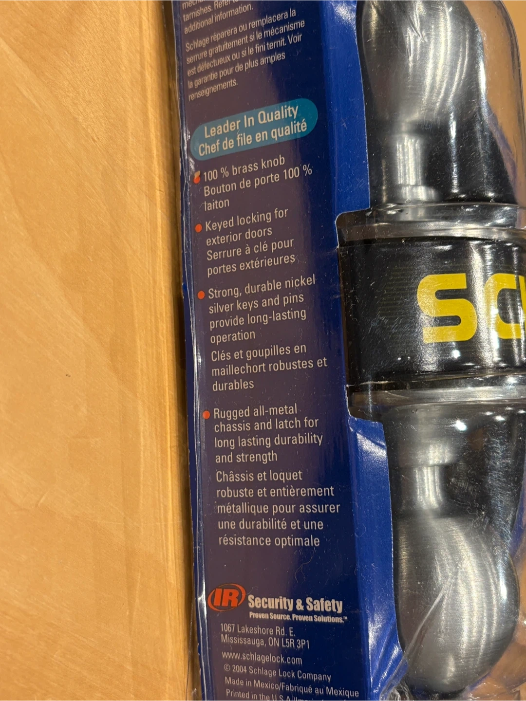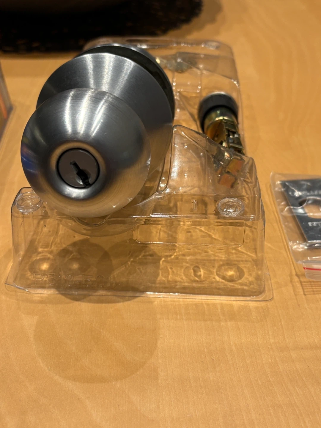 Selling a used Schlage keyed entrance doorknob! It comes with all the original components and accessories, including the latch, strike plate, screws, and keys. Still in the original packaging.