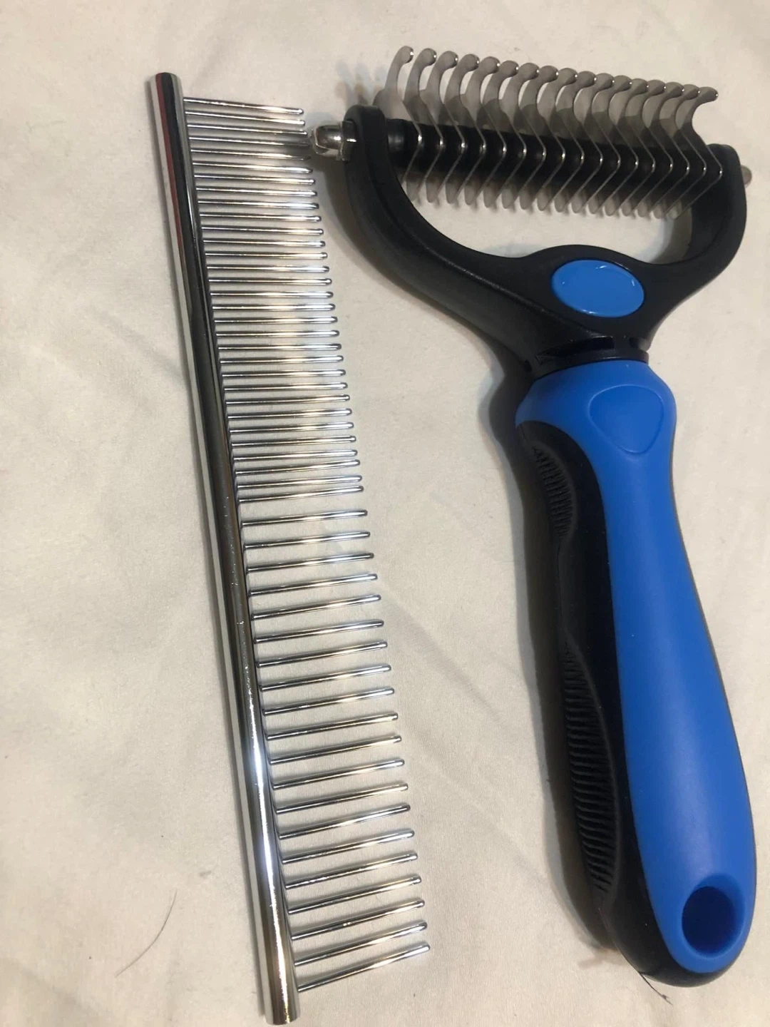 Looking to keep your furry friend looking their best? This Candure pet grooming tool set is just what you need! It includes a dematting comb and a regular comb to help keep your pet's coat healthy and tangle-free!