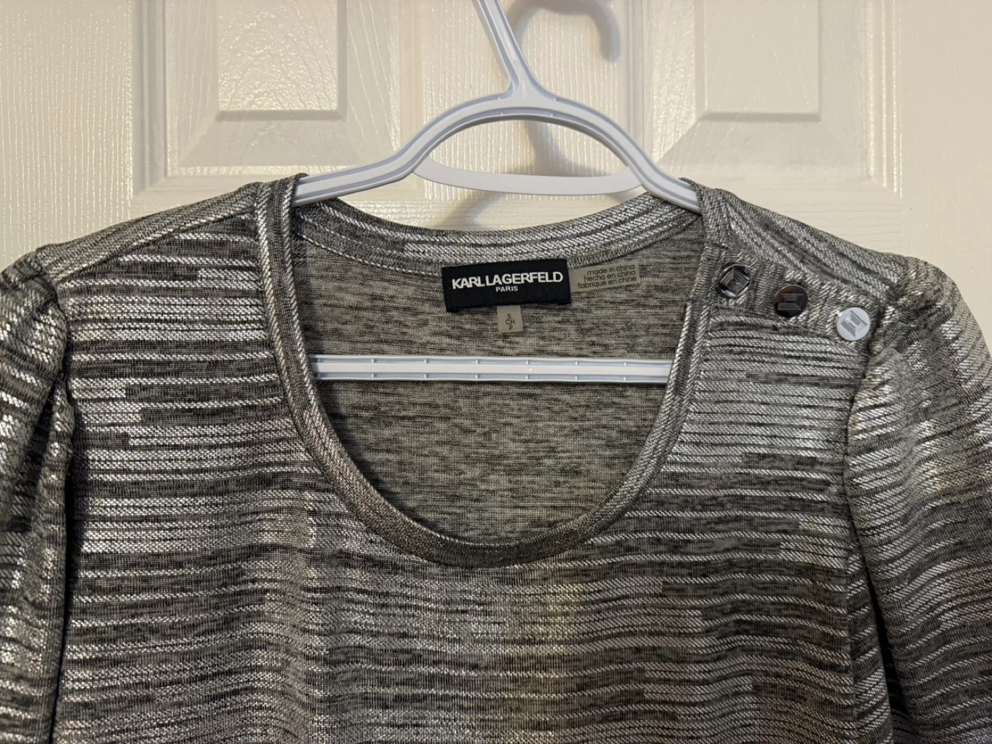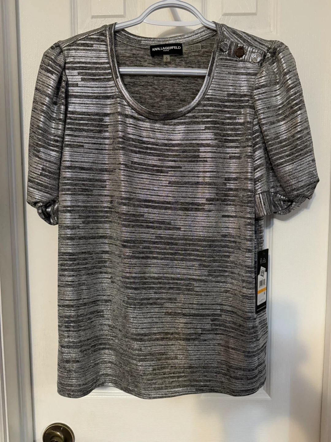 Selling a Karl Lagerfeld Paris top in size small! It's a lovely silver colour with a unique texture. Originally bought for $79.00