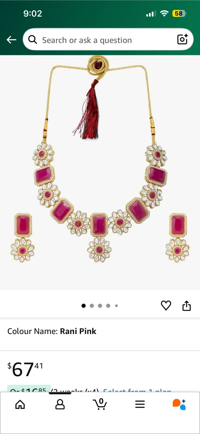 This is a beautiful necklace and earring set in Rani Pink. Originally bought for $67. It's perfect for adding a pop of colour to any outfit!