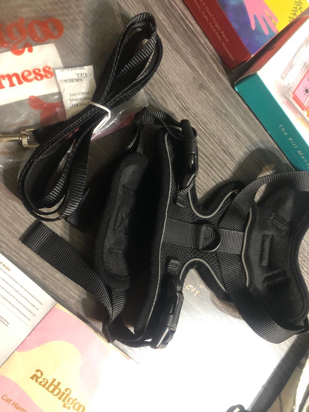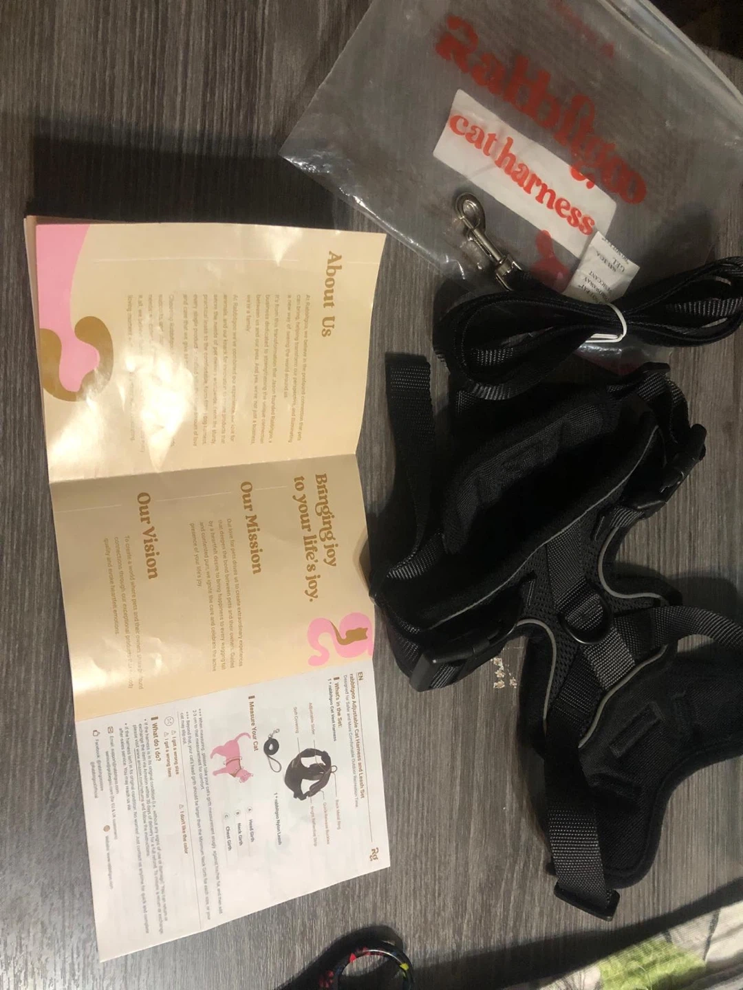 Selling a Rabbitgoo cat harness in black. It comes with the leash and original packaging. Perfect for taking your feline friend on outdoor adventures!