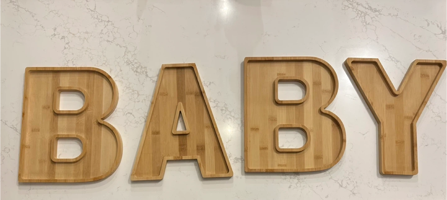 Selling a set of wooden charcuterie boards that spell out BABY!
