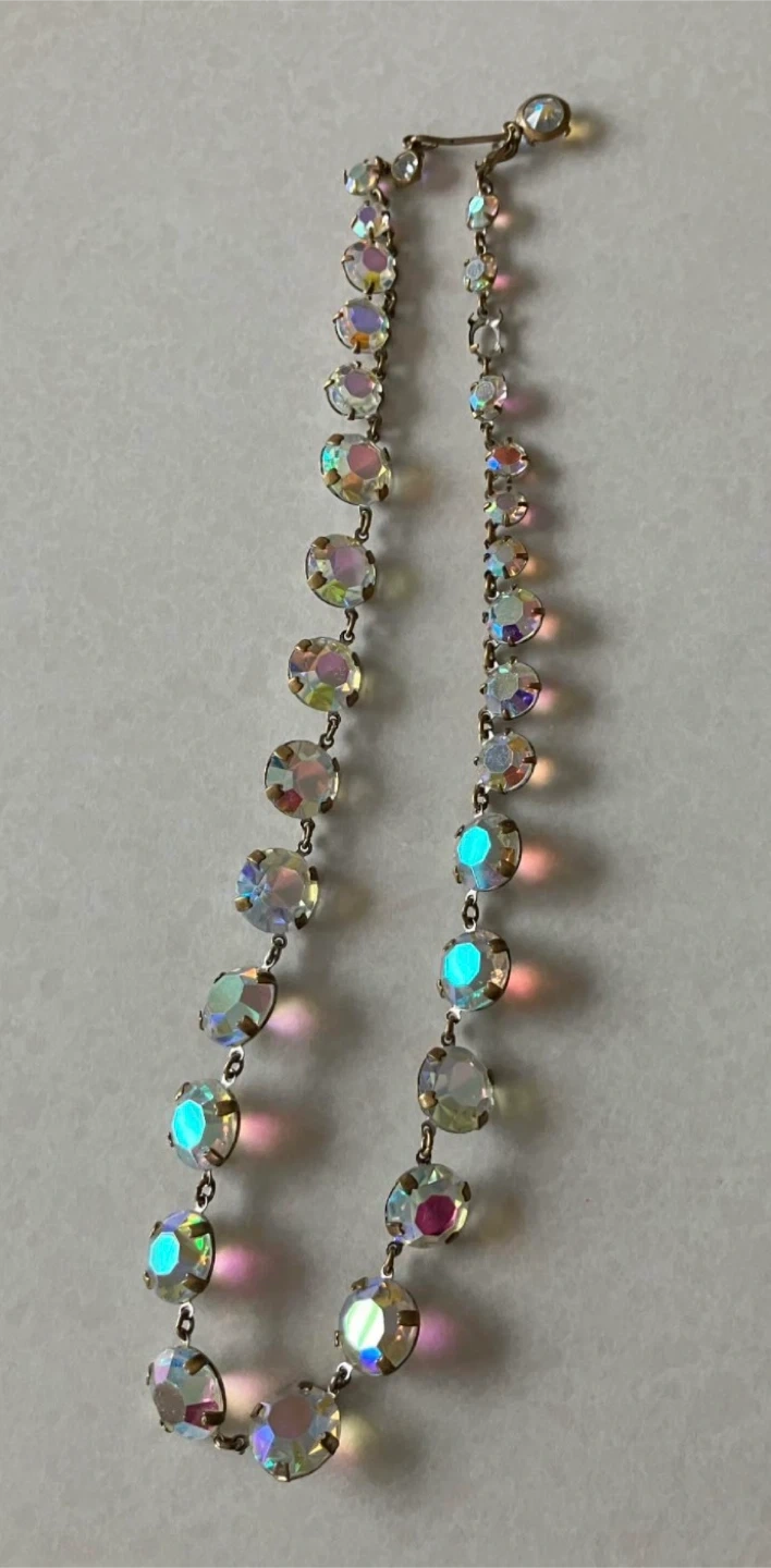 Beautiful vintage necklace featuring aurora borealis crystals! The crystals catch the light and create a stunning rainbow effect. It's a unique piece that would add a touch of sparkle to any outfit