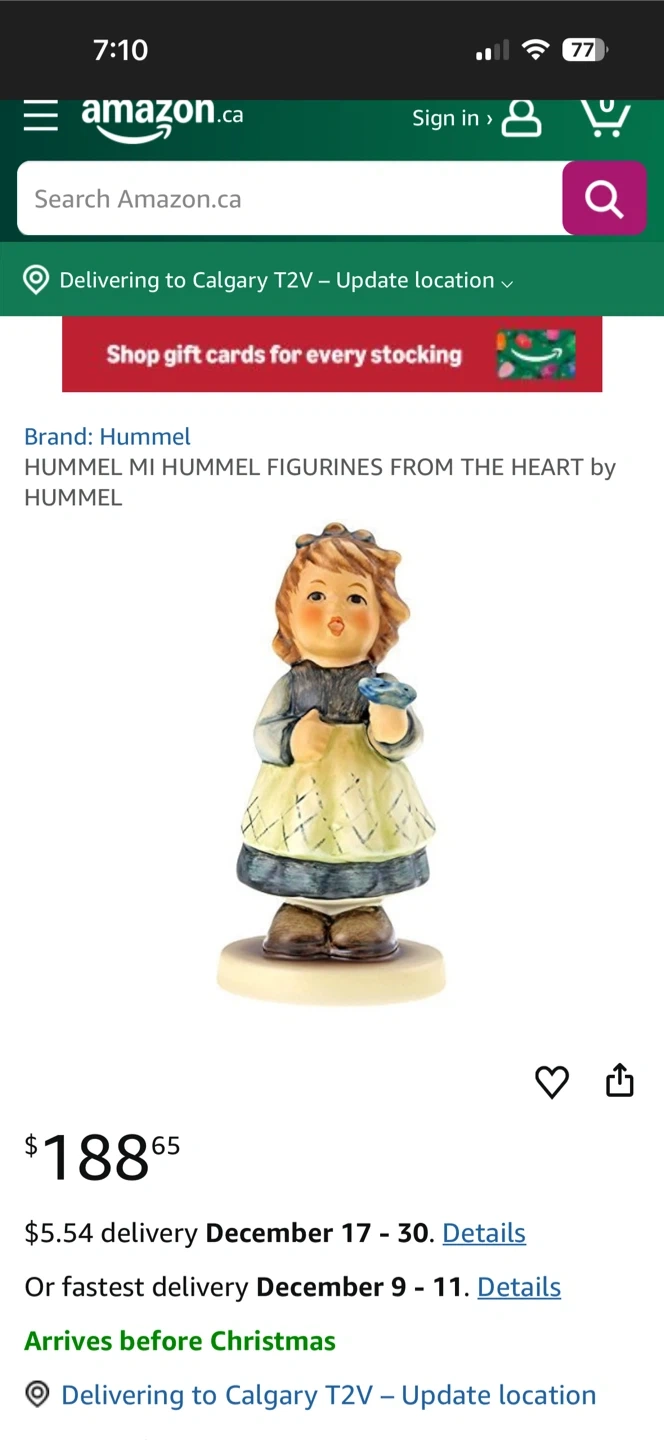 Selling a Hummel figurine called "From The Heart" by Hummel. It says "Für Dich From The Heart" on the base. The bottom of the figurine is marked "Goebel Germany 1993". Pick up Haysboro SW.