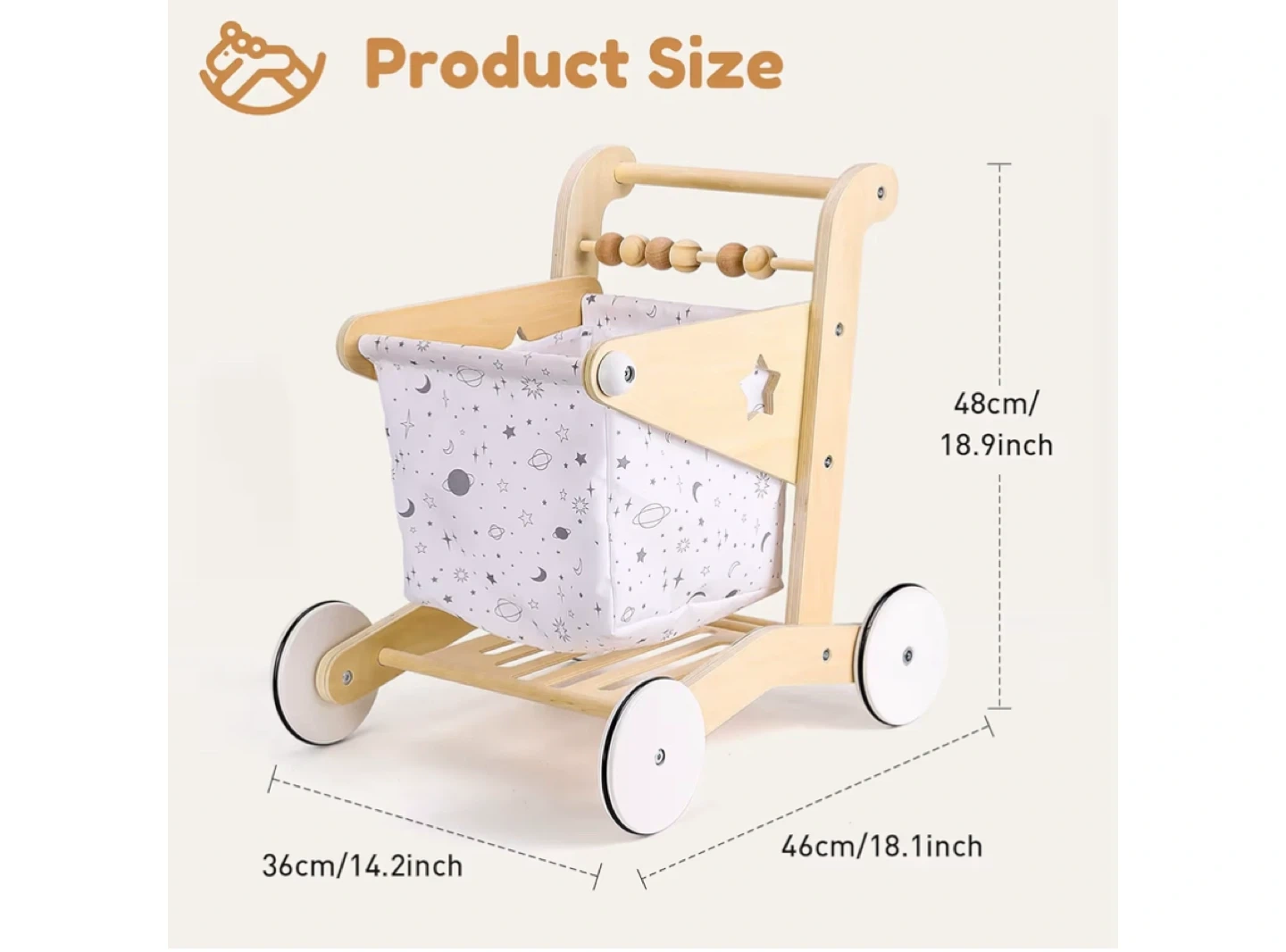 Woodoe Wooden Baby Walker - 1-3 Age-New