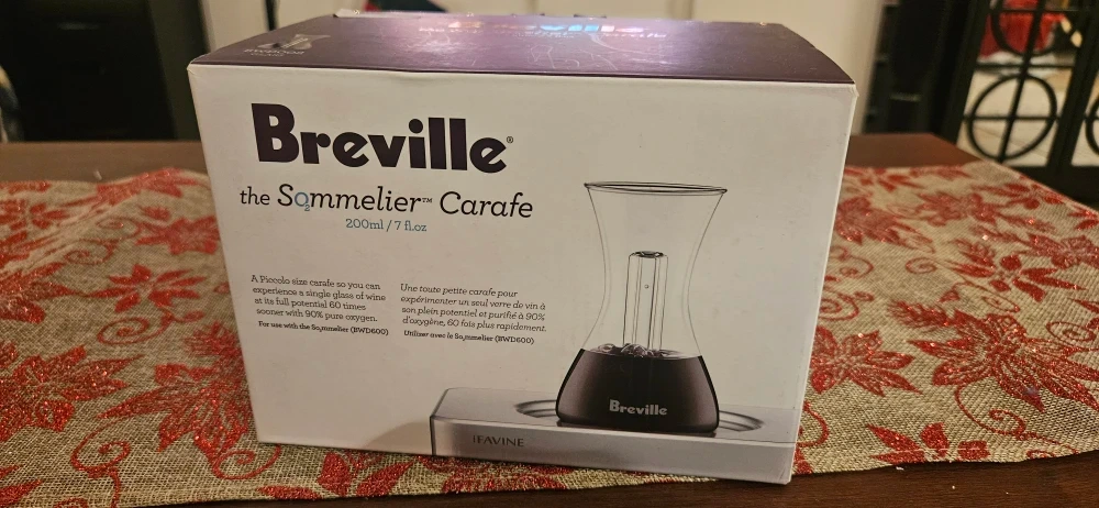 Selling a brand new Breville the Sommelier Carafe, still in its original box! Glass carafe only. This carafe is designed to oxygenate wine, enhancing its potential and purity. It can fully oxygenate a single glass of wine in about 60 seconds, providing it with 90% pure oxygen. It's also compatible with the Sommelier (BWD600).