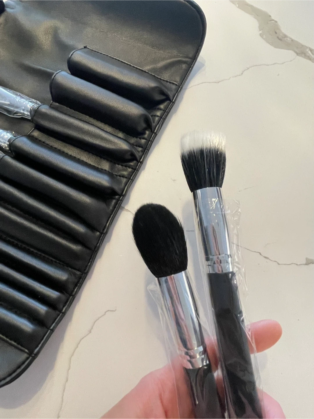 Selling a brand new 11pc makeup brush set. Comparable to Sephora quality. Comes with a cute PU leather wrap case that can be used to hold various beauty tools like eyeliner, lip brushes, tweezers. etc.
