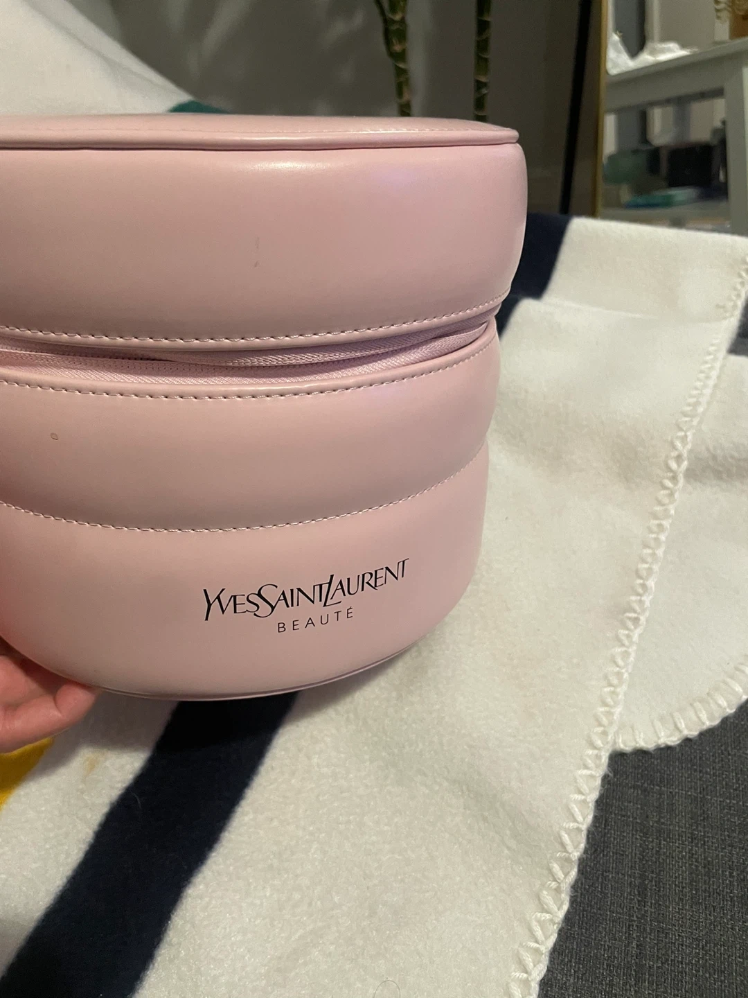 Selling a super cute YSL Beaute vanity case in pink! It's in great condition and perfect for storing your makeup and skincare essentials. The case features the iconic YSL logo and a stylish, quilted design. It’s a great way to keep your beauty products organized and looking chic