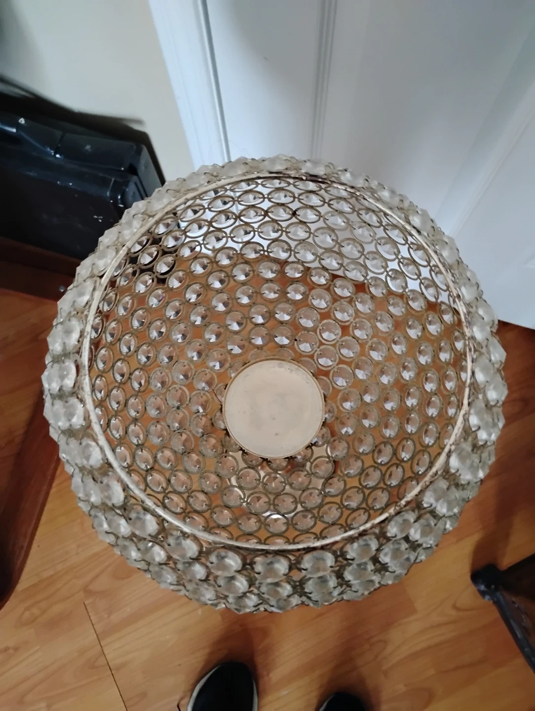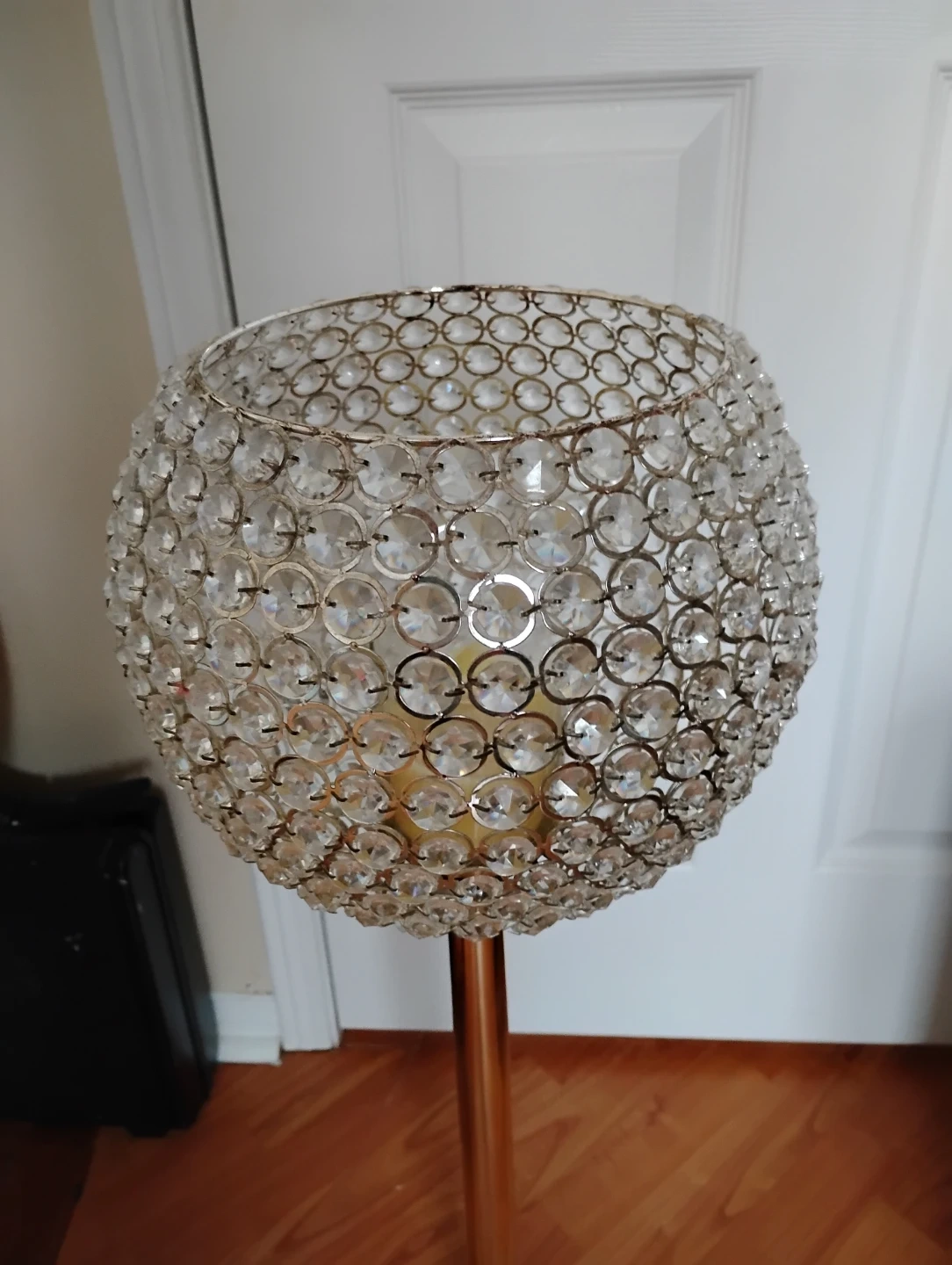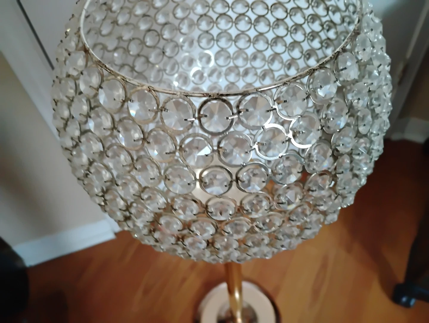 Here's a beautiful crystal globe floor lamp that adds a touch of elegance to any room! It features a spherical shade adorned with clear crystals, set on a sleek, metallic base. This lamp provides a soft, ambient light, perfect for creating a cozy atmosphere in your living space
