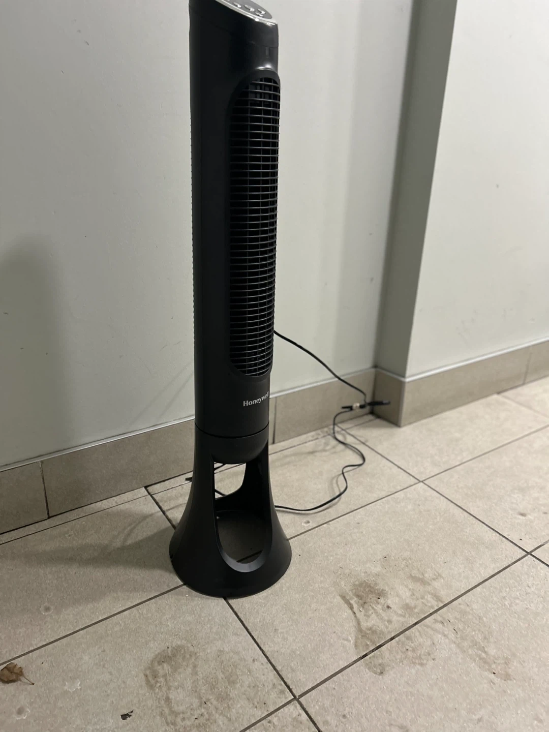 Selling a Honeywell QuietSet tower fan in black. It has multiple speed settings and a timer function. Great for keeping cool!