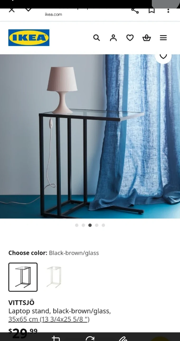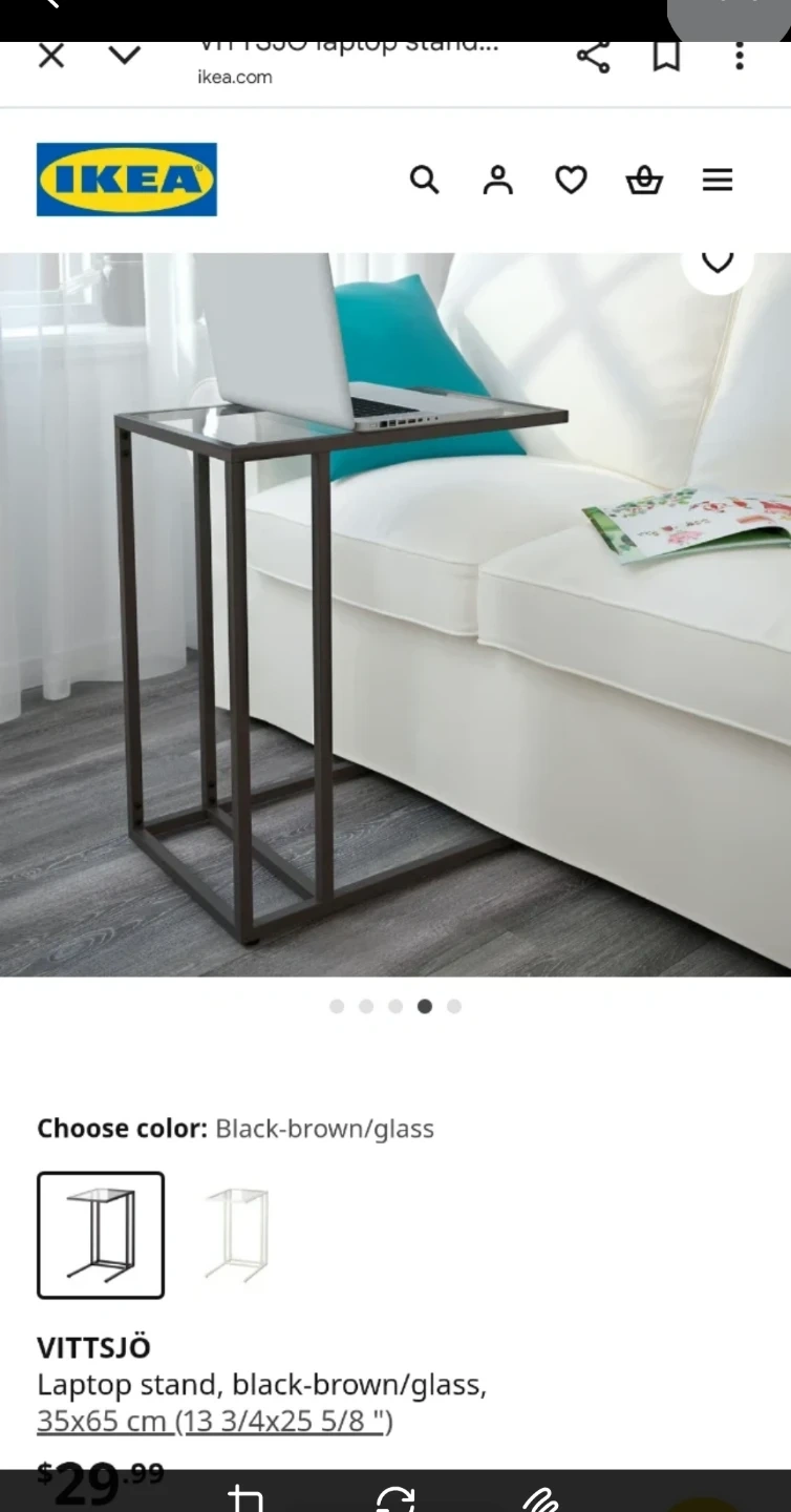 Selling an IKEA VITTSJÖ laptop stand in black-brown with a glass top. It measures 35x65 cm (13 3/4x25 5/8 "). Great for small spaces or as a side table!
