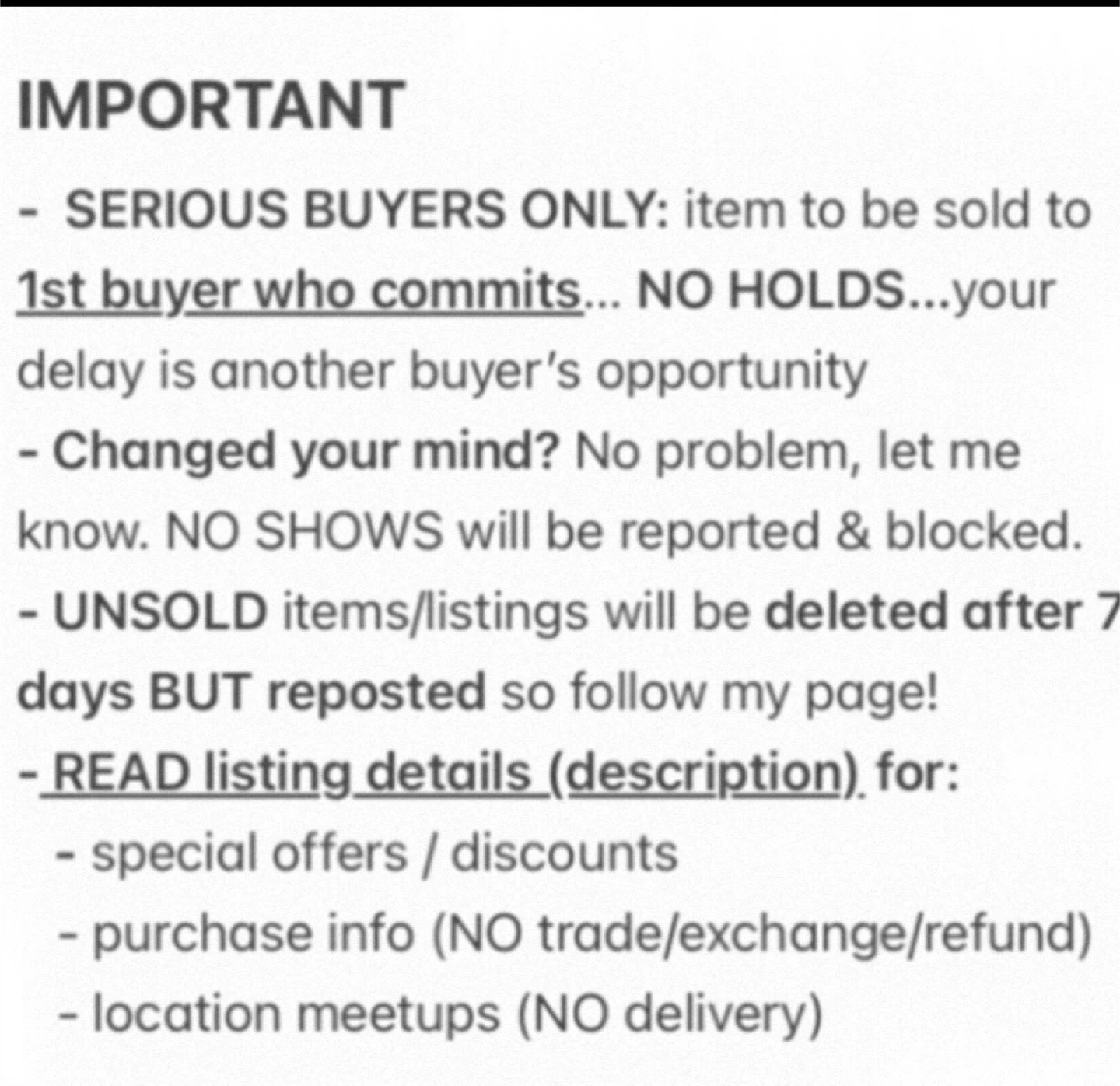 SERIOUS BUYERS ONLY / FINAL SALE / Cash Payment at pickup / NO HOLDS (Items will be sold on a FIRST-COME/PAYMENT-FIRST-SERVE basis!)