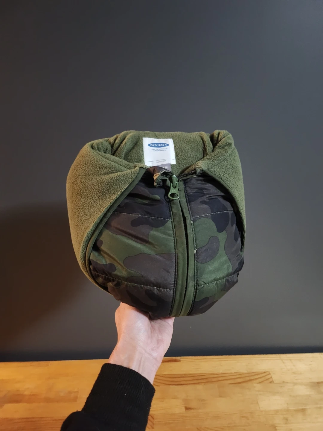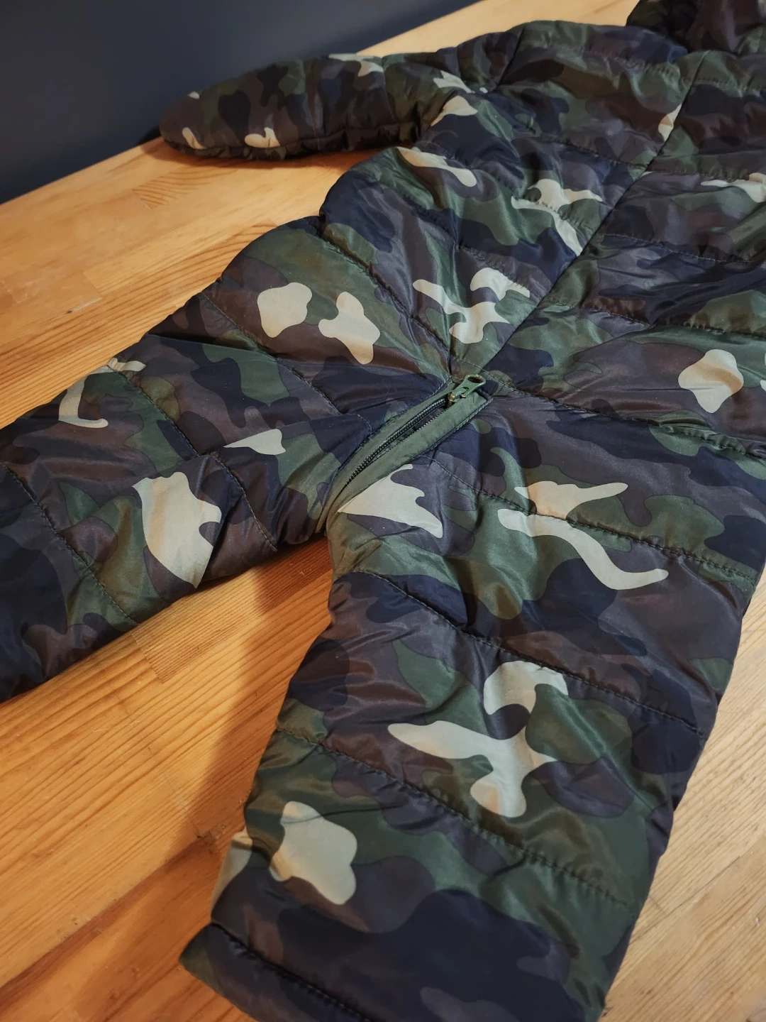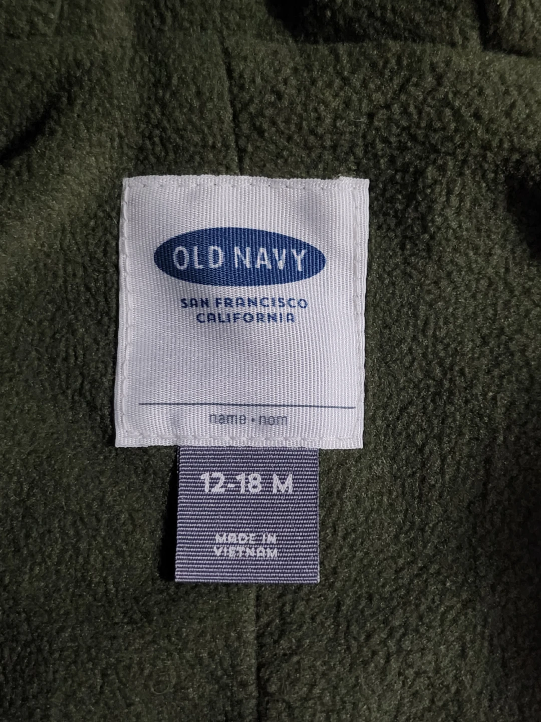 Keep your little one warm this winter with this adorable camo snowsuit from Old Navy! It's in great condition and perfect for babies aged 12-18 months.