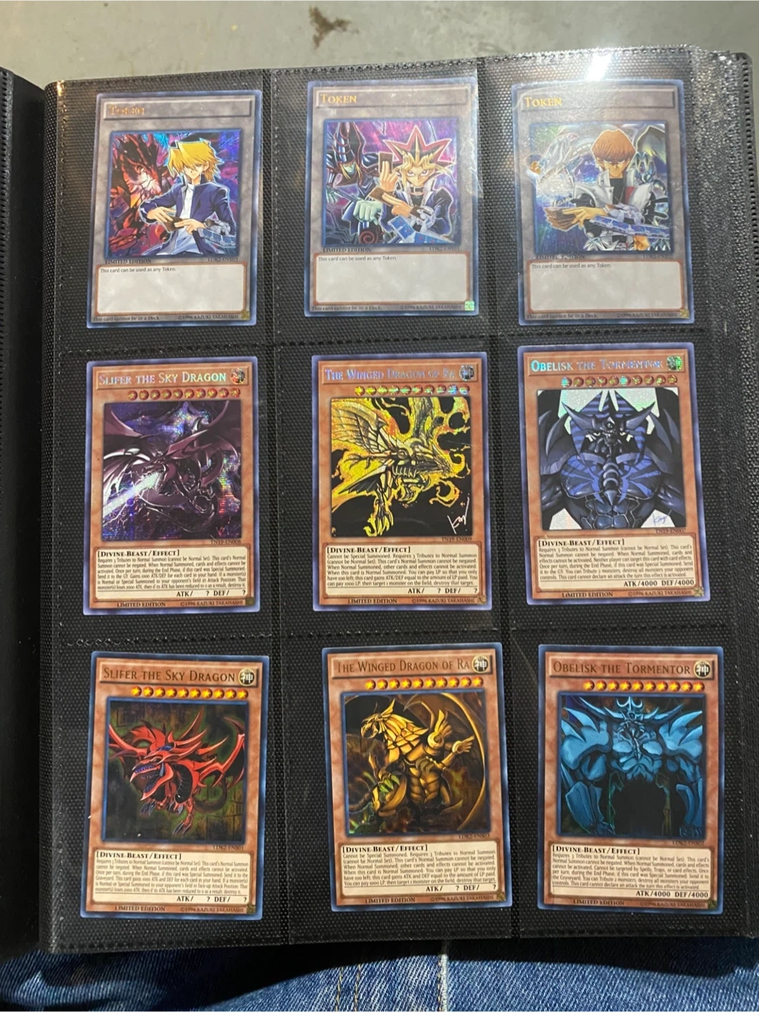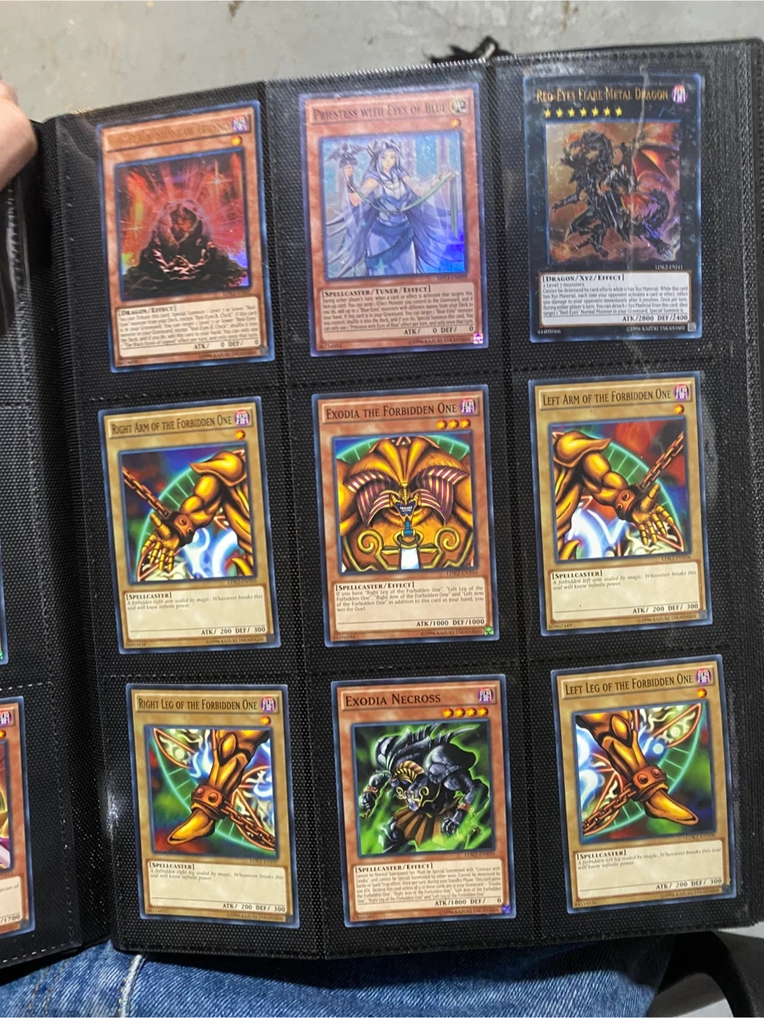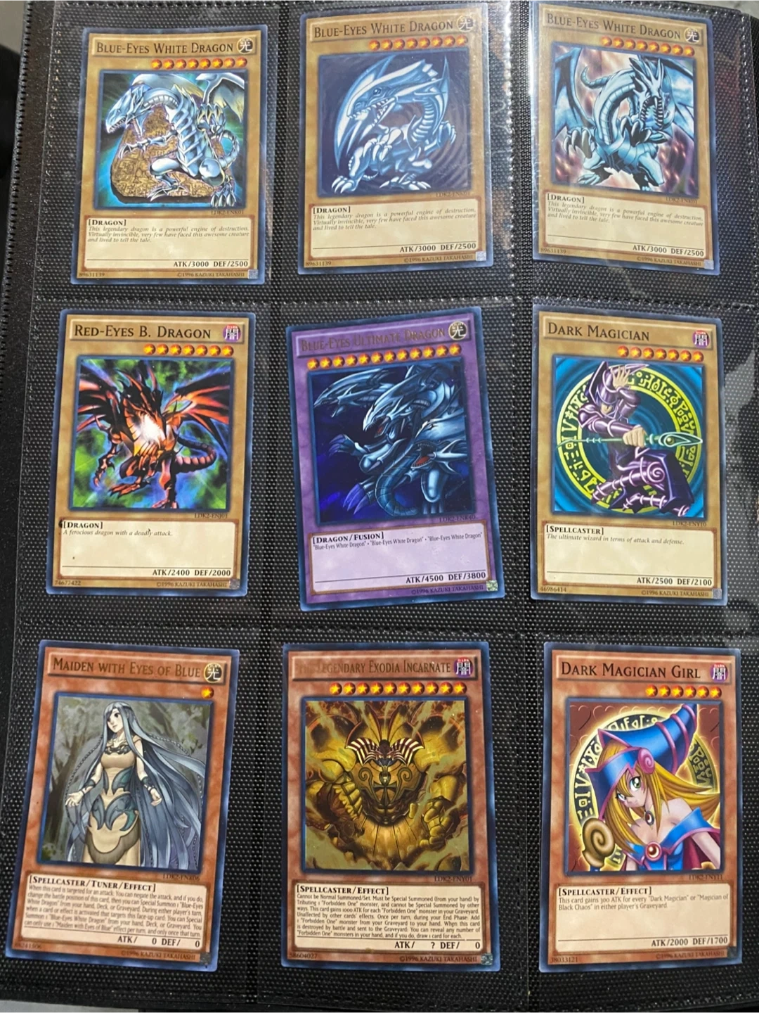 Selling a collection of Yu-Gi-Oh cards. Includes some rare cards like Exodia, Blue-Eyes White Dragon, and Egyptian God Cards. Also includes the Pokemon card Entei.