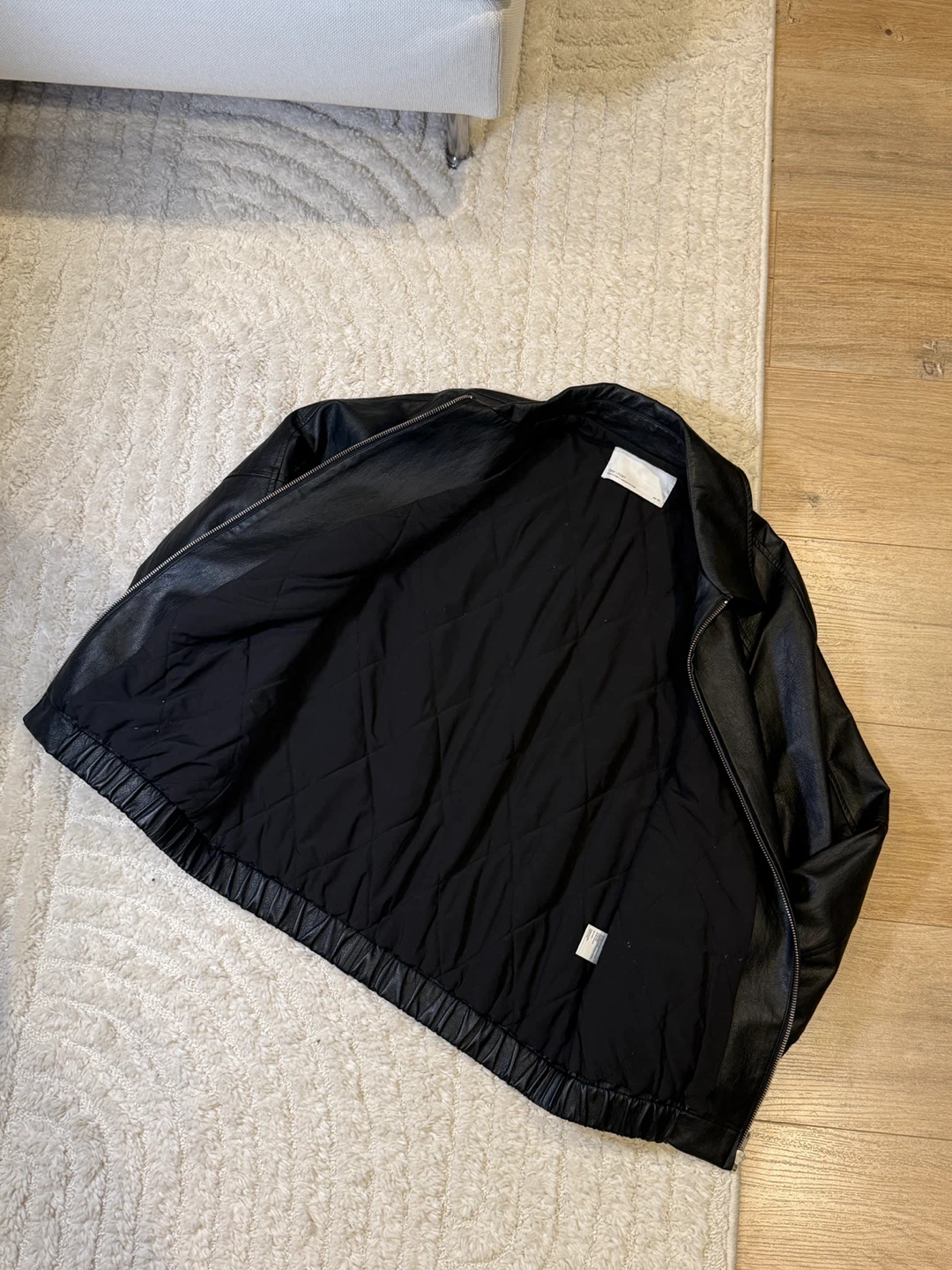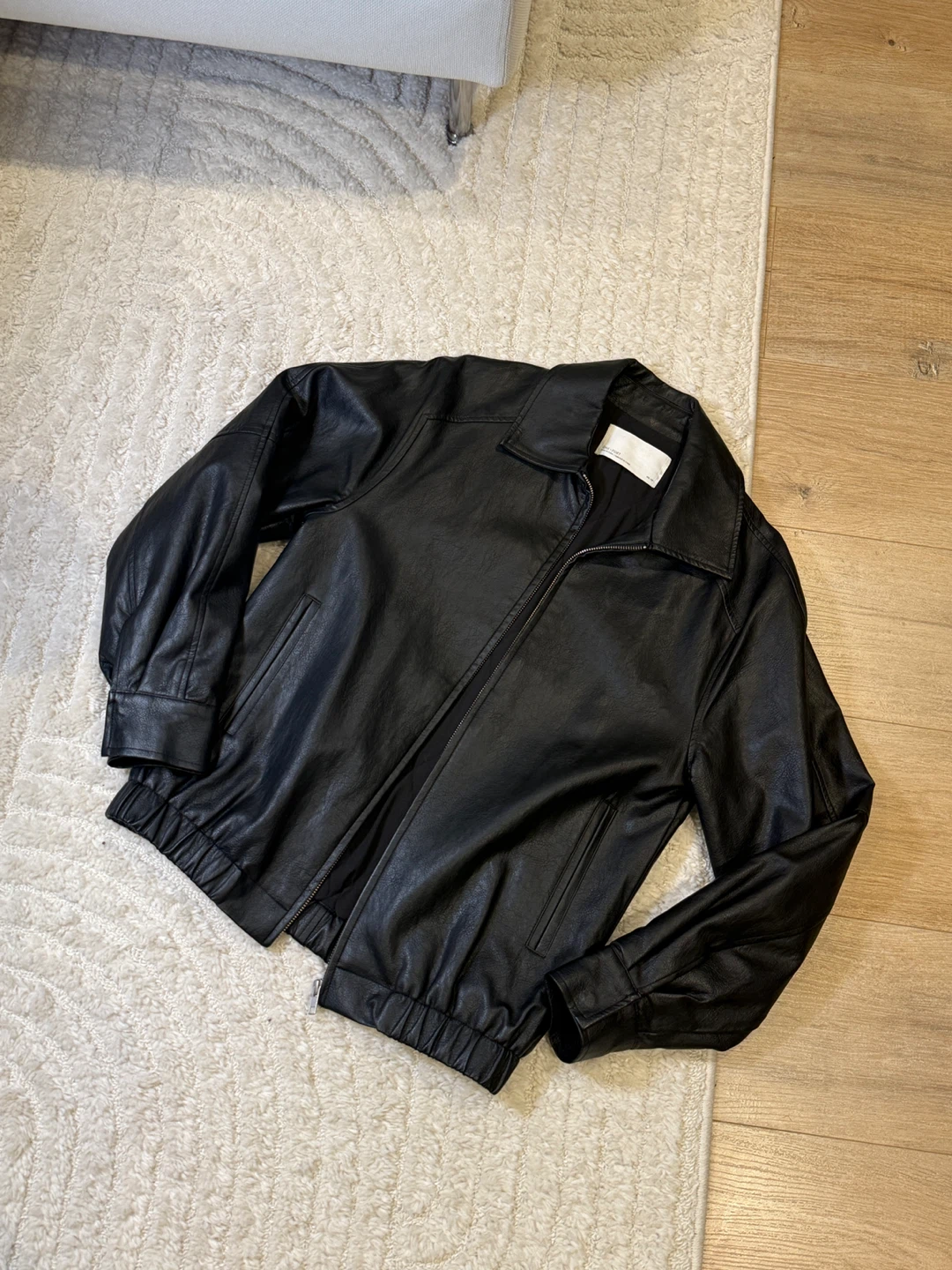 Selling an Oak + Fort black bomber jacket in size xx small. It's in great condition and ready for a new owner! The jacket is a classic style and perfect for layering.