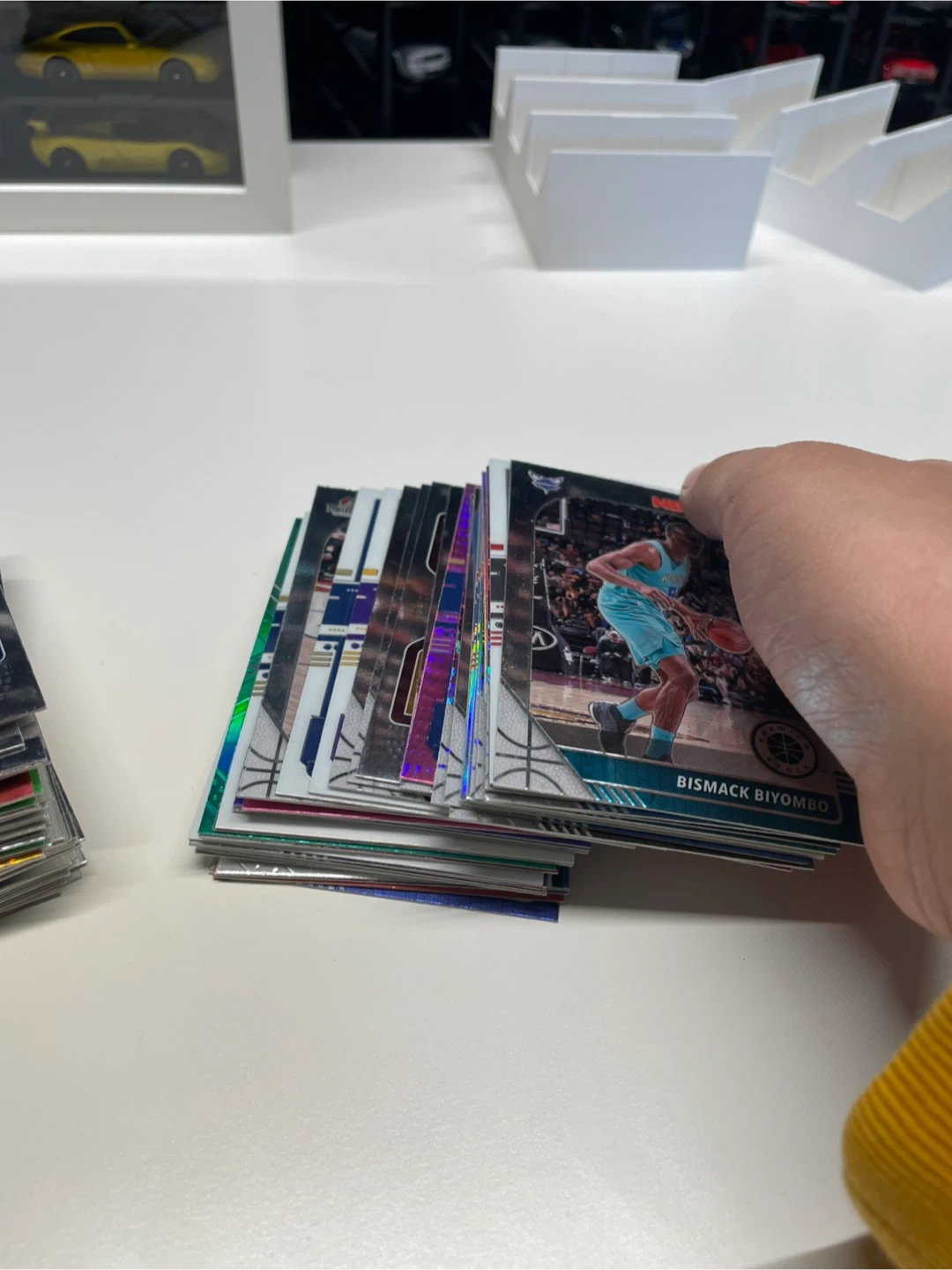 Collection of basketball trading cards, including NBA Hoops and Prizm brands. Features various players and designs. These cards are great for collectors!