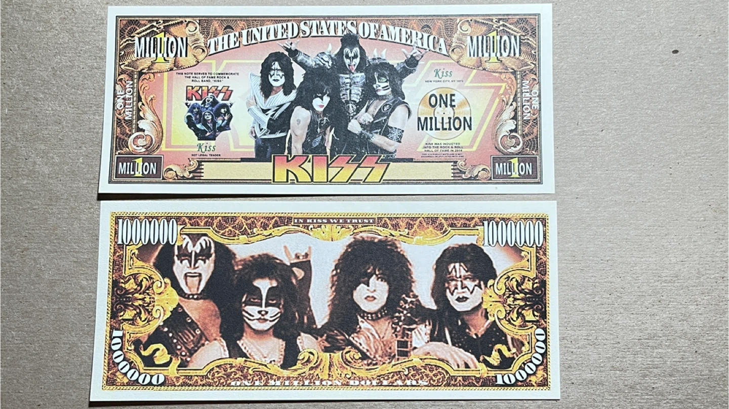 Selling two KISS collectible million-dollar bills! One is a one million dollar bill and the other is a one million dollar bill. Perfect for any KISS fan or collector