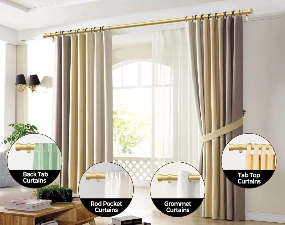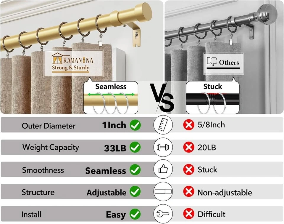 KAMANINA Gold Curtain Rod 32 to 58 Inch (2.6-4.8 Feet), 1 Inch Heavy Duty Curtain Rods for Windows, Modern Adjustable Drapery Rods with End Cap