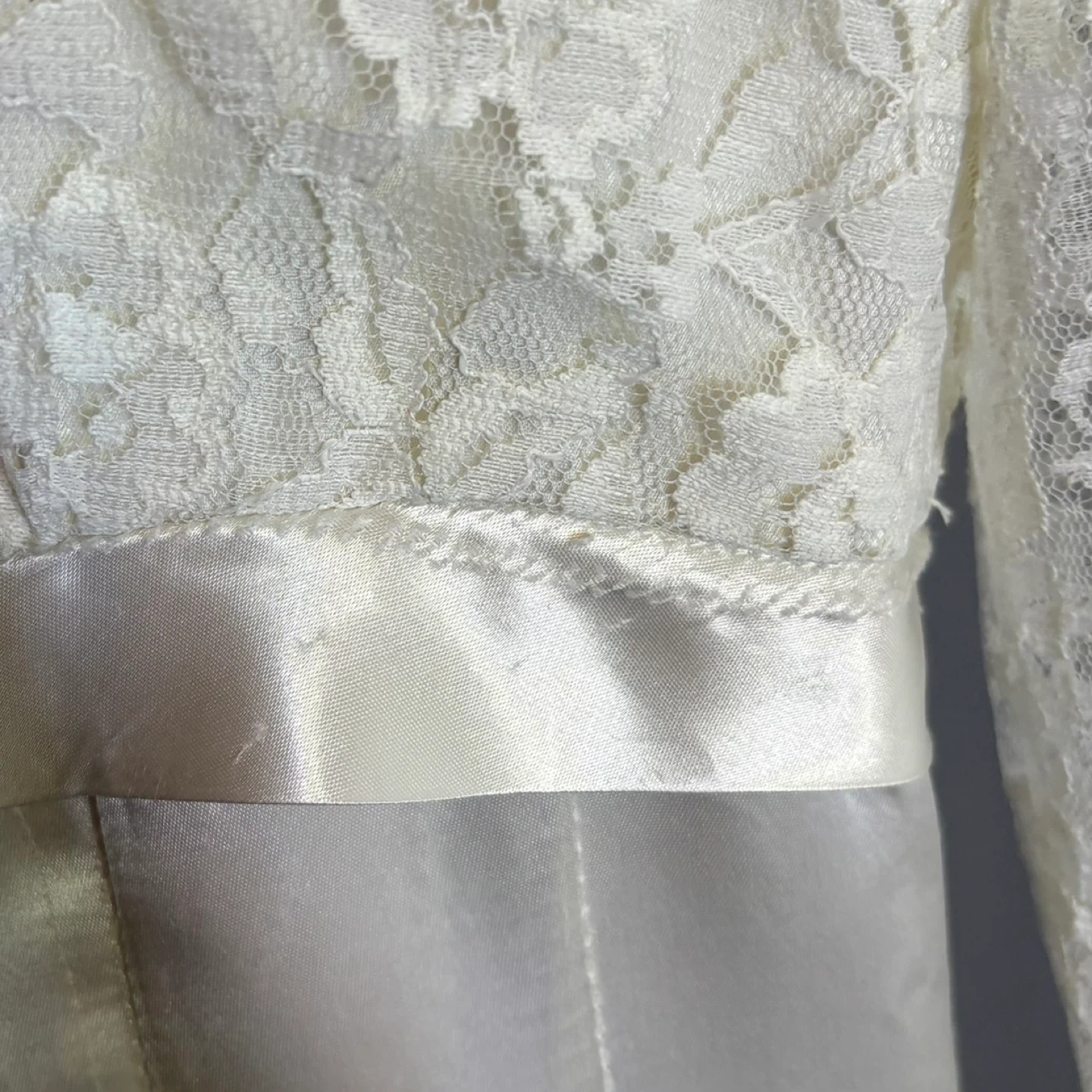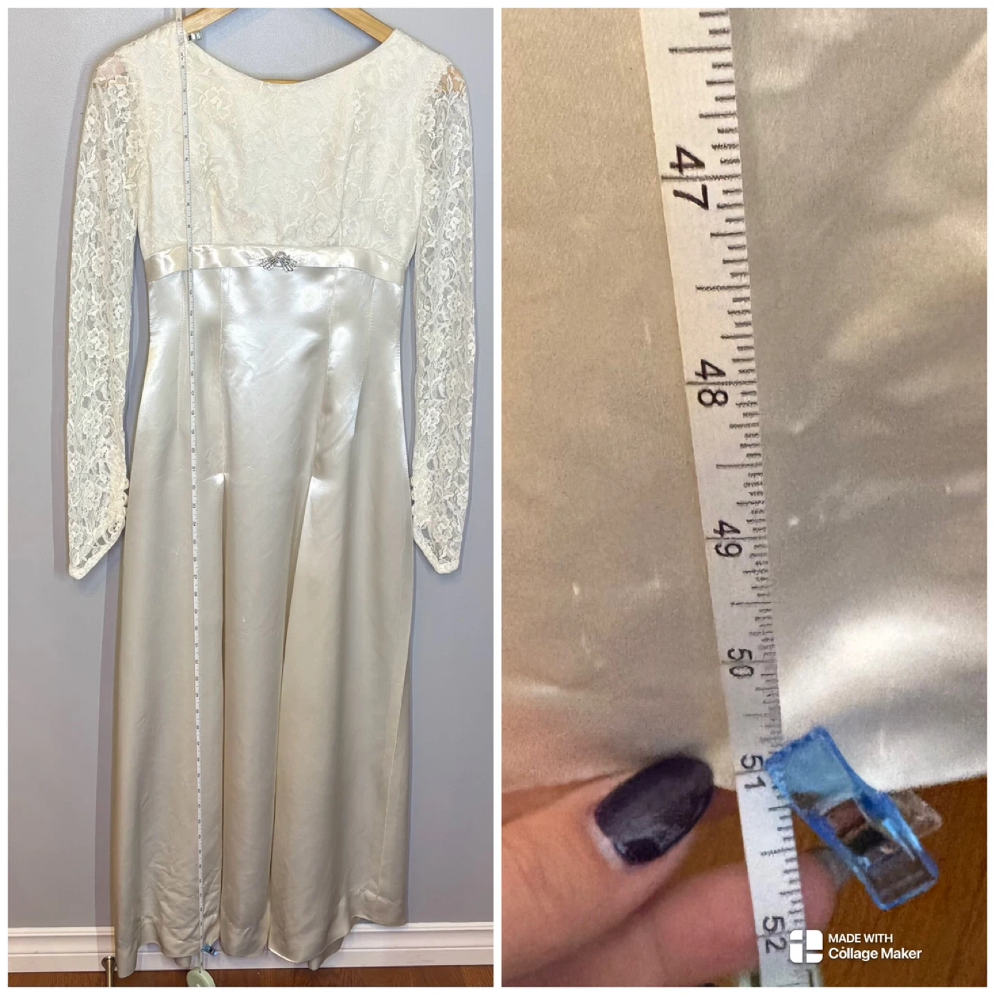 Vintage 1966 Handmade Satin Lace Empire Waist Wedding Dress
