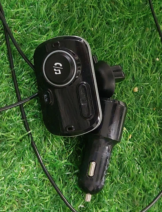 Selling a car Bluetooth FM transmitter. It's black and in good condition. It allows you to play music from your phone through your car's FM radio.