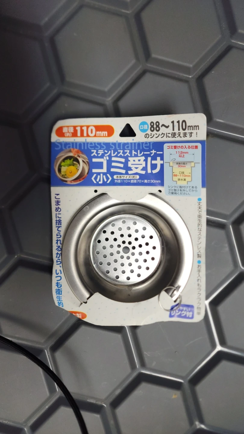 Selling a stainless steel sink strainer. It fits sinks with diameters of 88~110mm. The strainer's outer diameter is approximately 110mm, the bottom diameter is 70mm, and it's 30mm tall. Keeps your sink clean and hygienic!