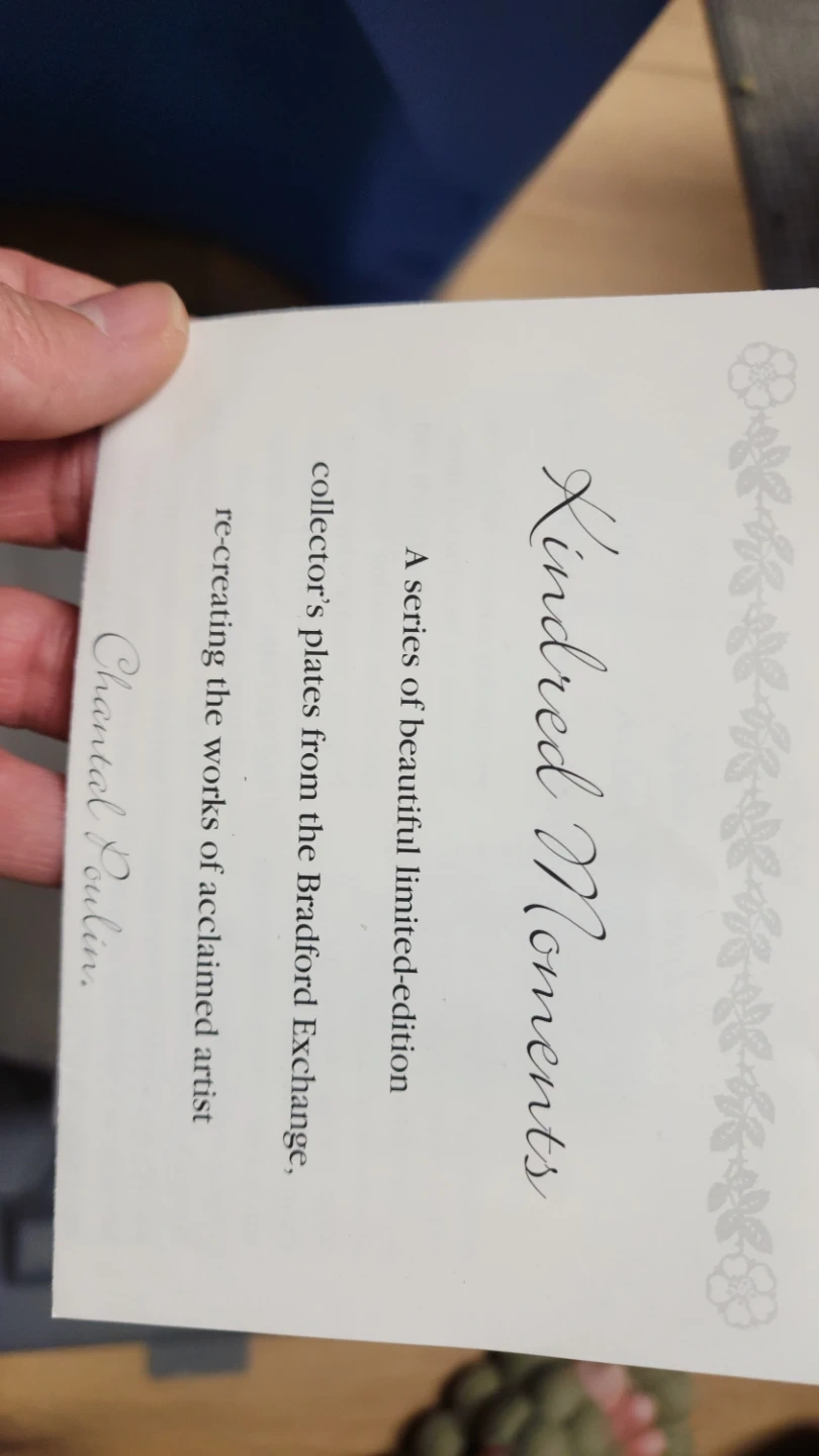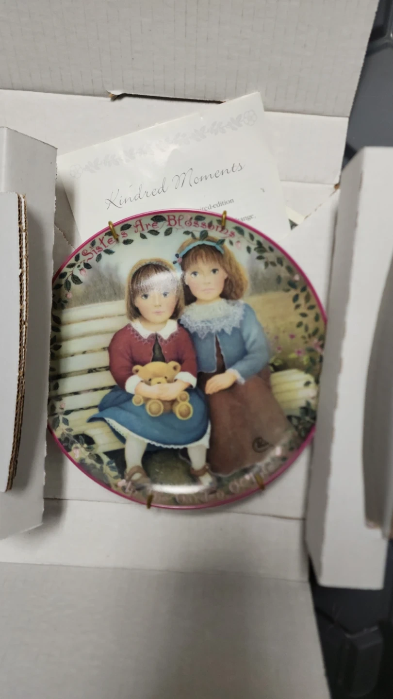 Selling a collector's plate from the Kindred Moments series. It's a beautiful limited edition piece re-creating the works of acclaimed artist Chantal Poulin. The plate depicts two young girls.