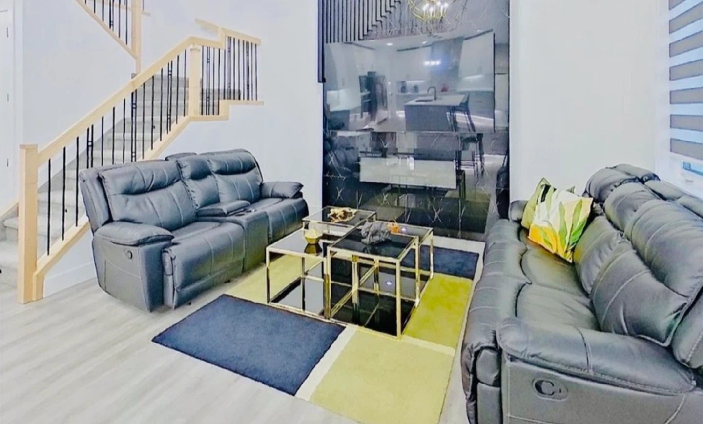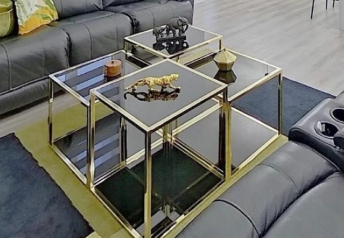 Looking to add a touch of modern elegance to your living room? These nesting coffee tables are just the ticket! The black glass tops and gold frames give off a chic, sophisticated vibe. They're perfect for saving space and adding a stylish focal point to your home