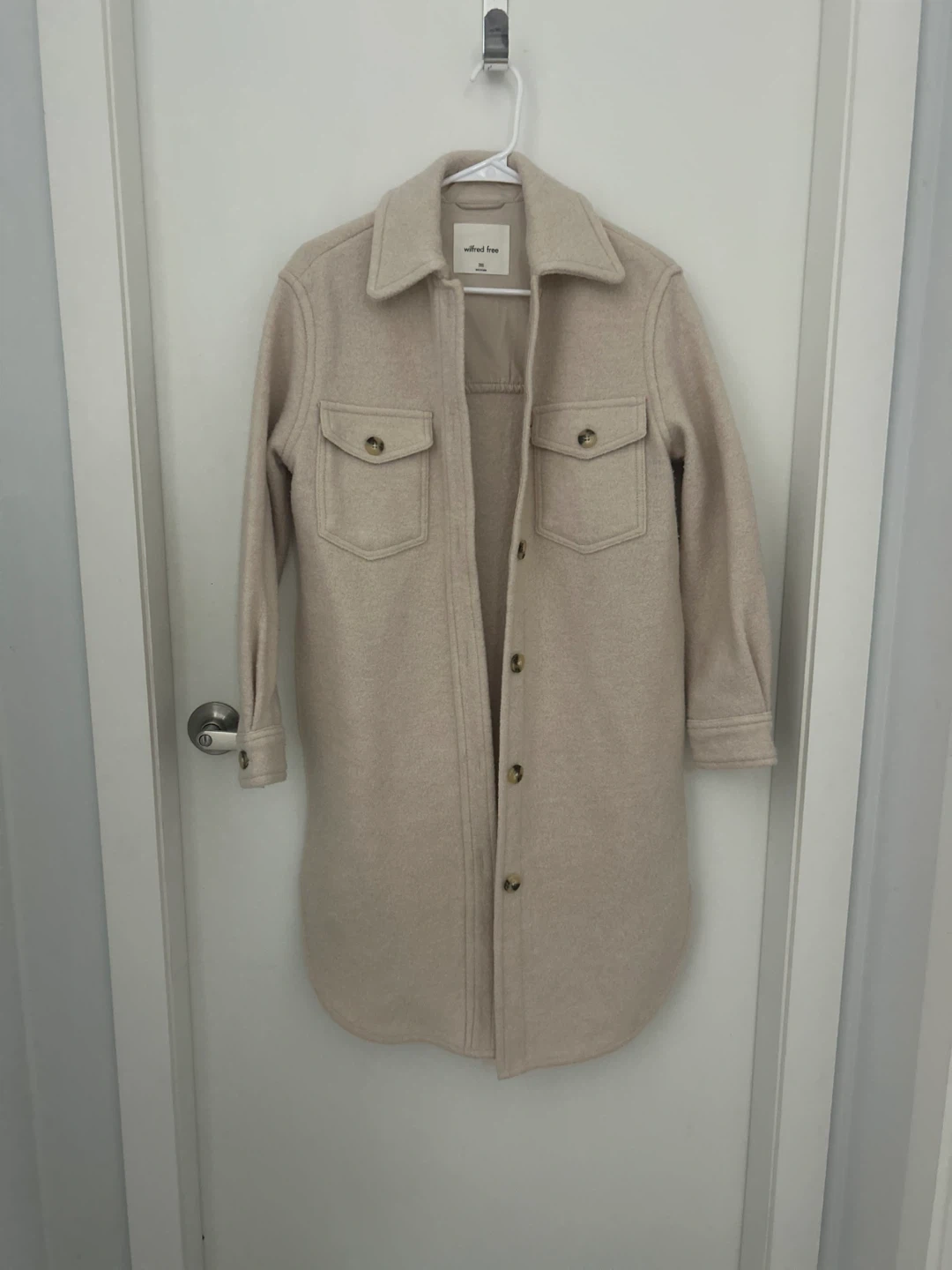 Selling a Wilfred Free shacket in size 2XS. It's a cozy wool blend, perfect for layering! It's in excellent condition and ready for a new home