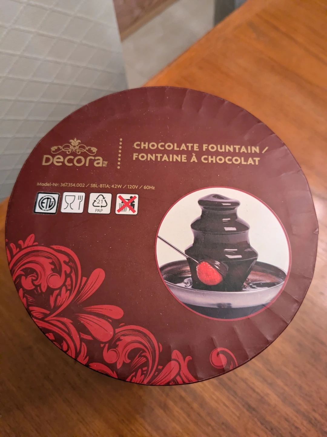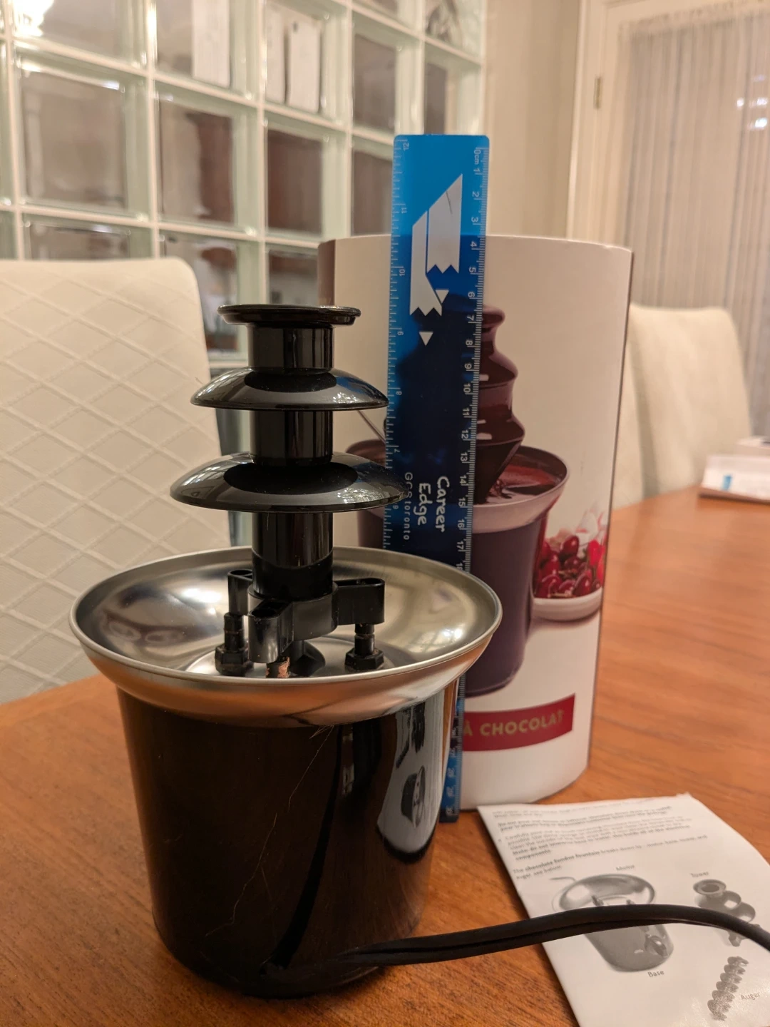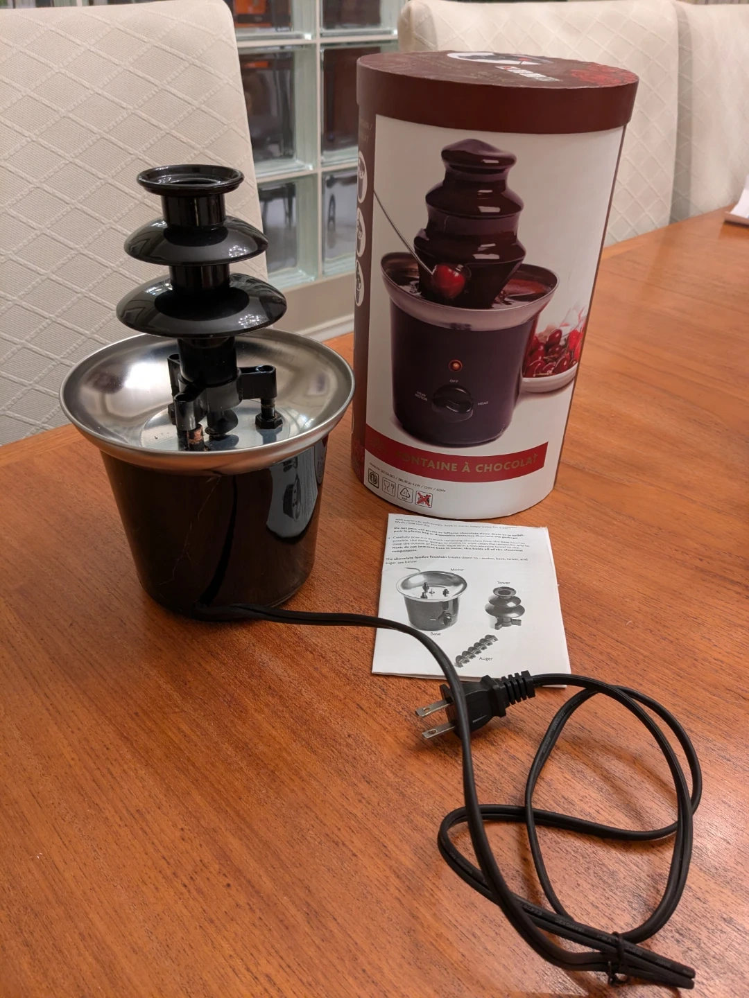 Here's a Decora chocolate fountain, ready to make your next gathering extra special! It comes with the original box and instructions. The height is approximately 16cm. Perfect for dipping strawberries, marshmallows, or anything else you can dream up. Only used once!