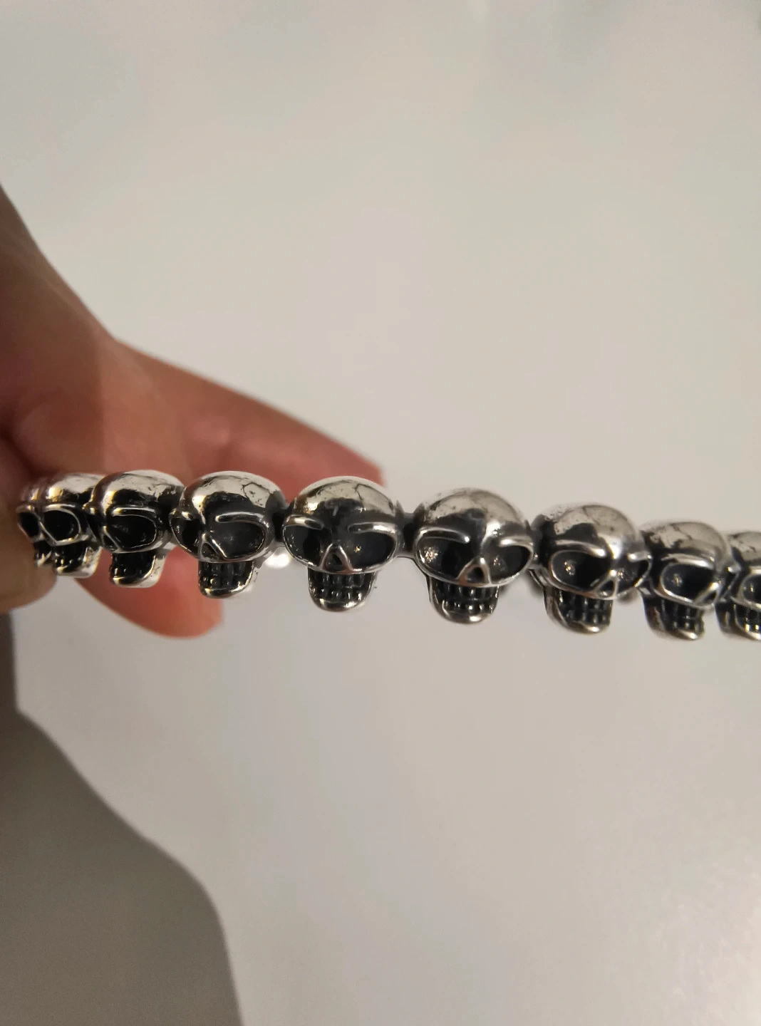 Selling a cool skull bangle bracelet. It has a unique design with a row of skulls. Perfect for adding a bit of edge to your style!