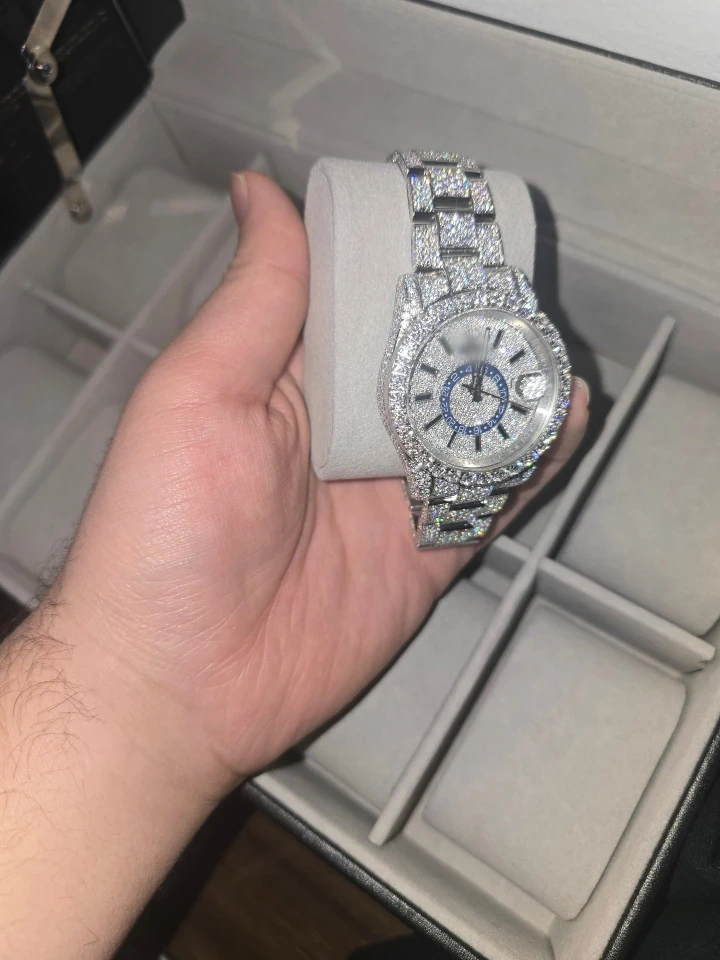 Buy & SellMoisanitte Iced Out Watch comes with Box and papersMoisanitte Iced Out Watch comes with Box and papers$900Selling a very shiny, iced-out watch. It's in great condition and comes with its box! Passes the diamond tester! Located in Brooklyn NYConditionNewWHERE TO MEETdunkin DonutsView MapSELLERverifiedJay moSheepshead Bay740 reviews1 chats·3 favorites·146 viewsSEND CHAT TO SELLERHi Jay mo! I’m interested in your listing.Hi Jay mo! I’m interested in your listing.Get the Karrot app to chatSign In to chat