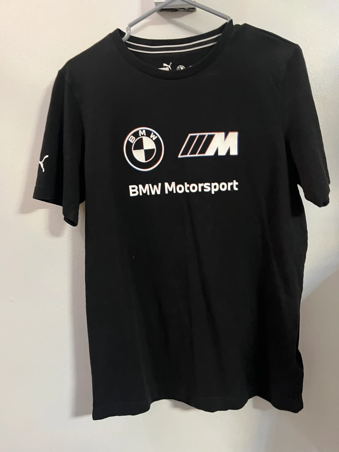 Selling a Puma BMW Motorsport track jacket. It features the BMW Motorsport logo and Puma logo. The jacket is black with blue and red accents. Great for any BMW or motorsport fan!