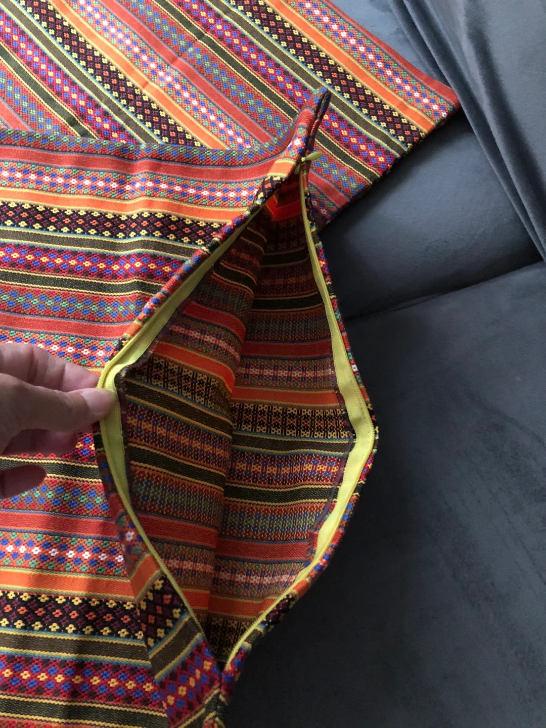 Here's a pair of decorative throw pillow cover featuring a vibrant striped pattern! It's brand new, never used in great condition and ready to add a pop of colour to your home decor