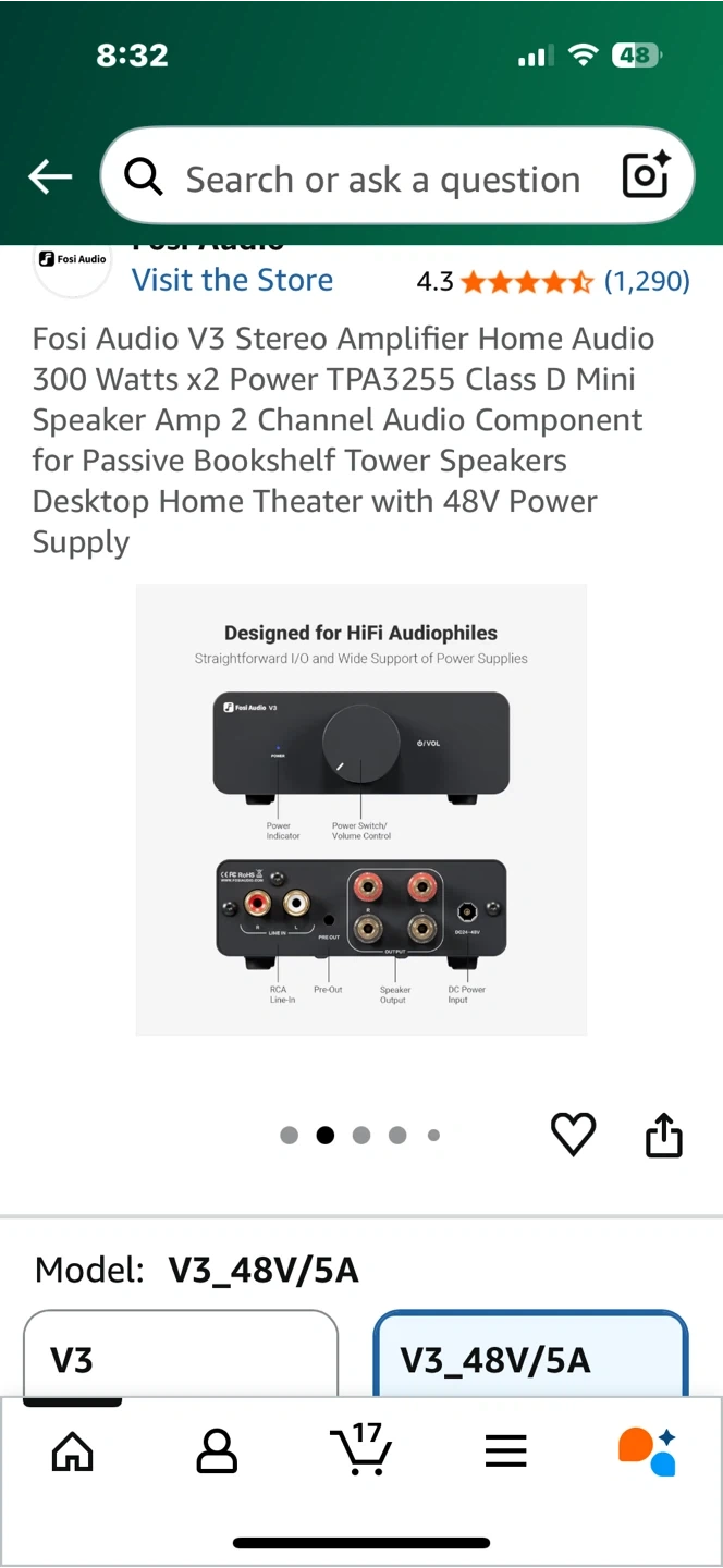 Selling a Fosi Audio V3 Stereo Amplifier! It's a home audio component with 300 Watts x2 power. It uses the TPA3255 Class D mini speaker amp. It's a 2 channel audio component for passive bookshelf tower speakers and desktop home theatre setups.